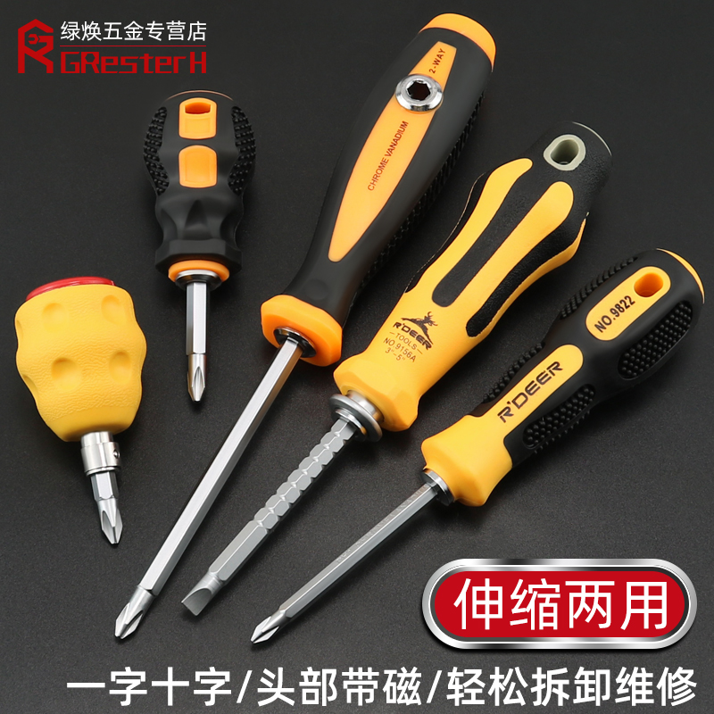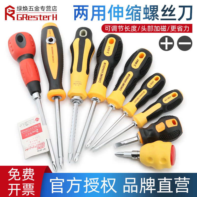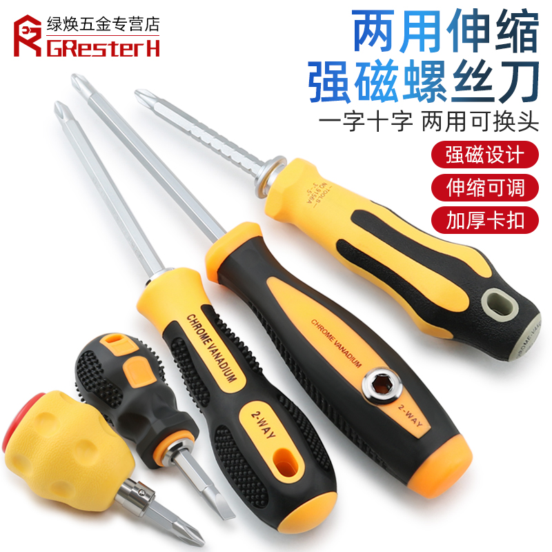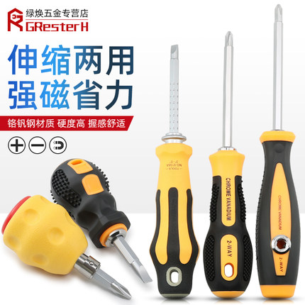 双头可伸缩螺丝批工业级一字十字螺丝刀套装S2钢两用起子家用工具
