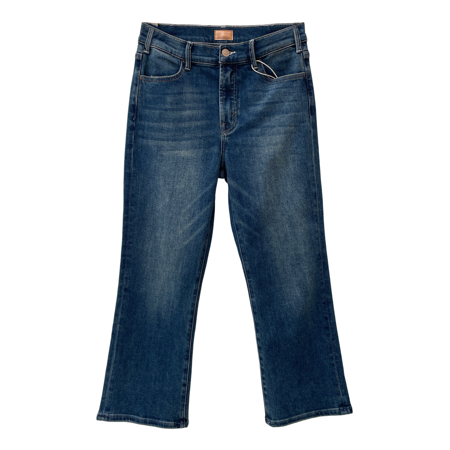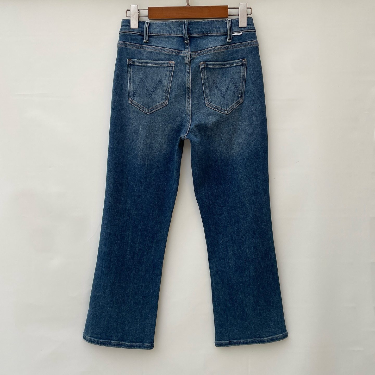 舒适弹力微喇9分牛仔裤女 做旧洗水蓝裤口微磨休闲裤子微喇裤