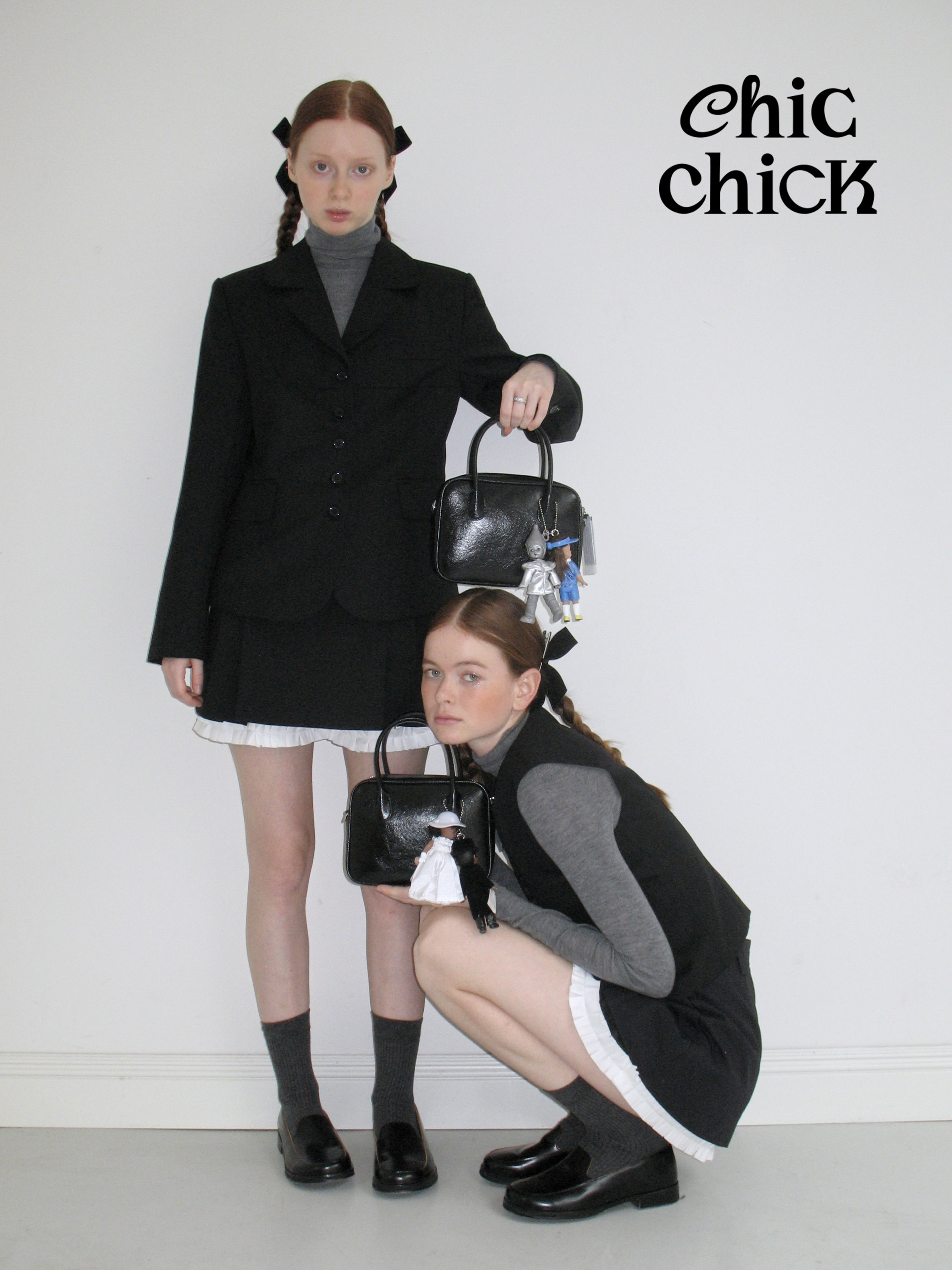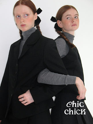 ChicChick时髦小鸡vol18唱诗班黑色羊毛精纺娃娃领西装学院风外套