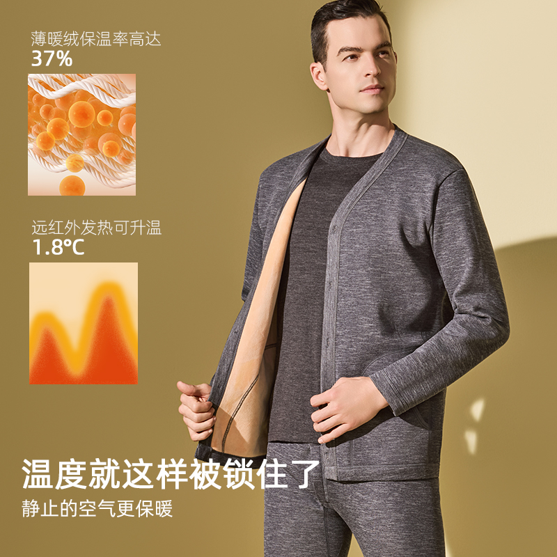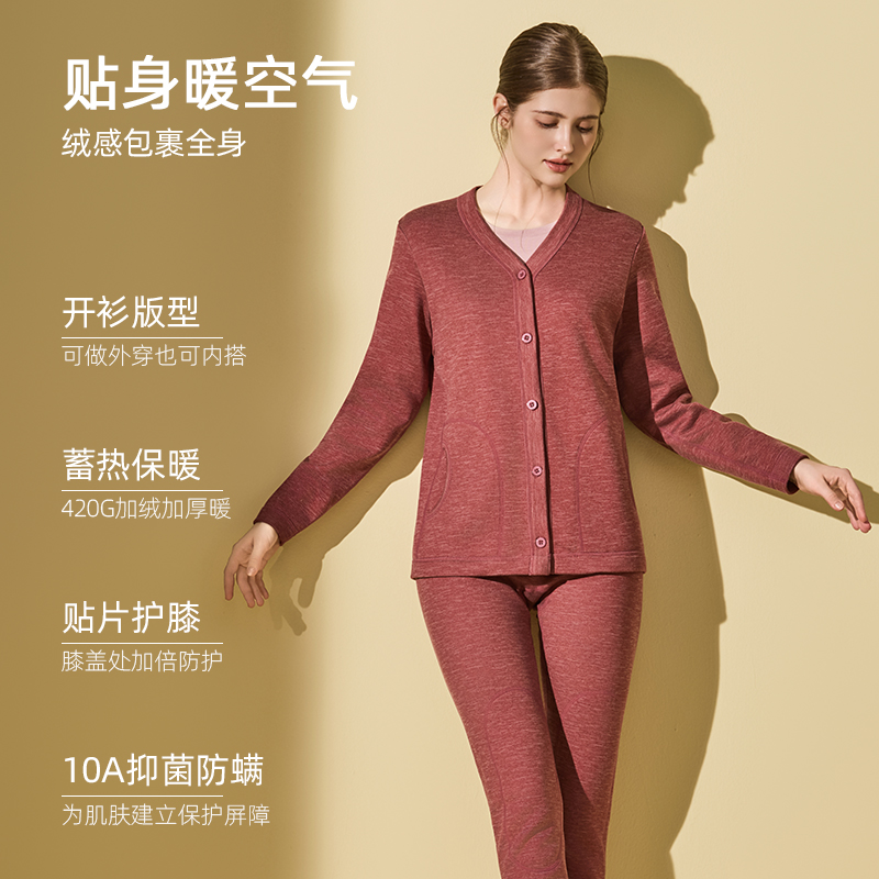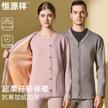 恒源祥保暖内衣女士加绒加厚开衫冬季中老年人开襟秋衣秋裤套装男