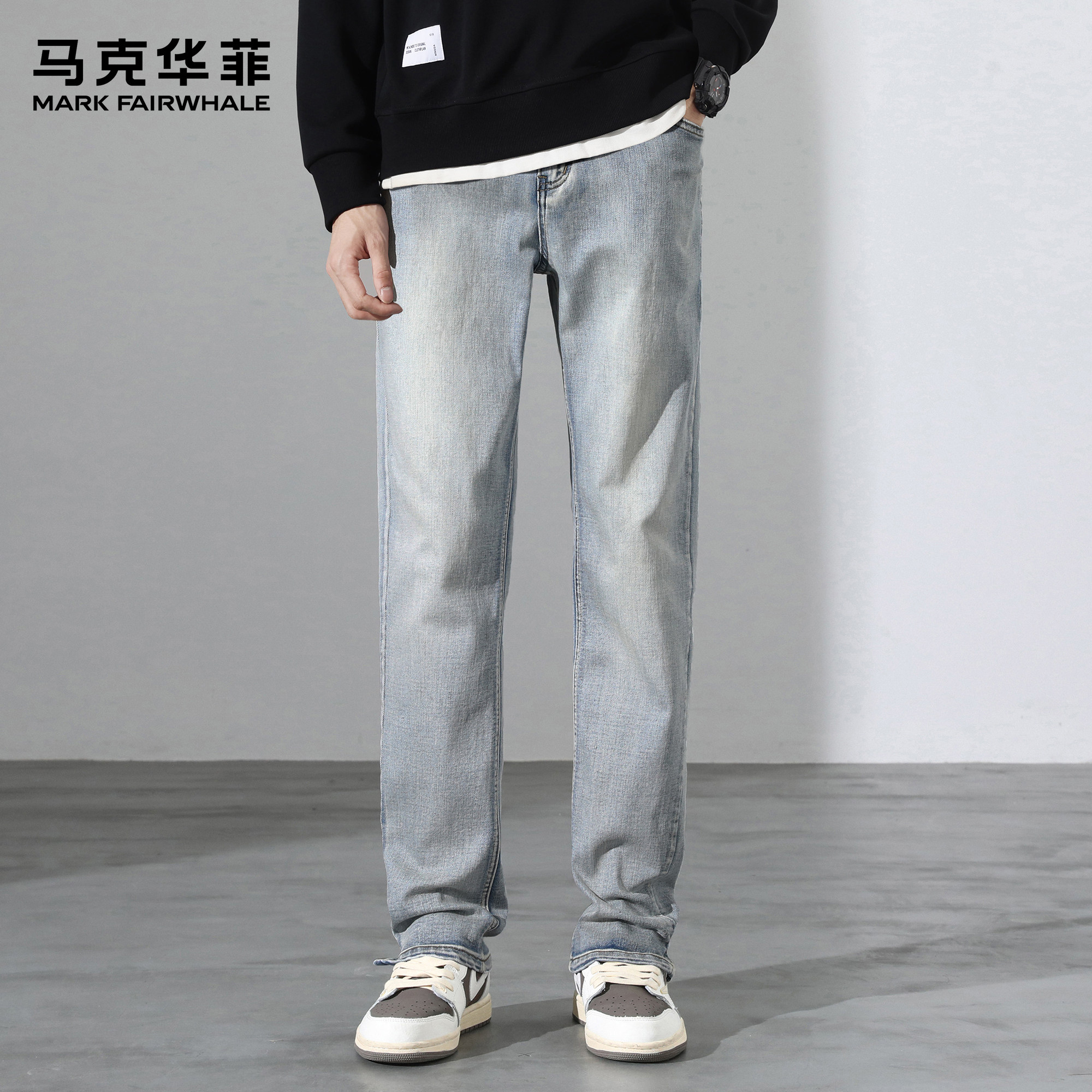 马克华菲牛仔裤男新款潮牌美式高街复古青少年痞帅直筒开叉长裤子