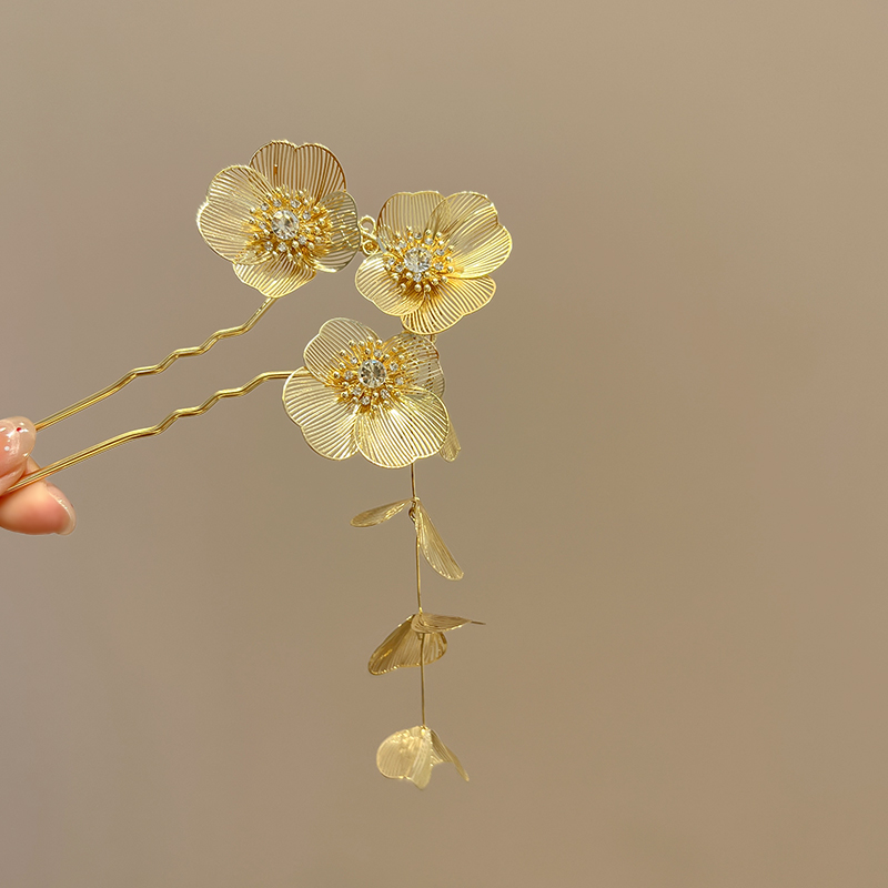 金色花朵U型发簪女2025新款爆款气质新中式精致小众独特簪子发饰