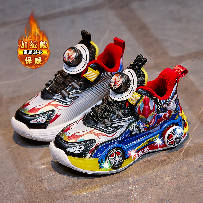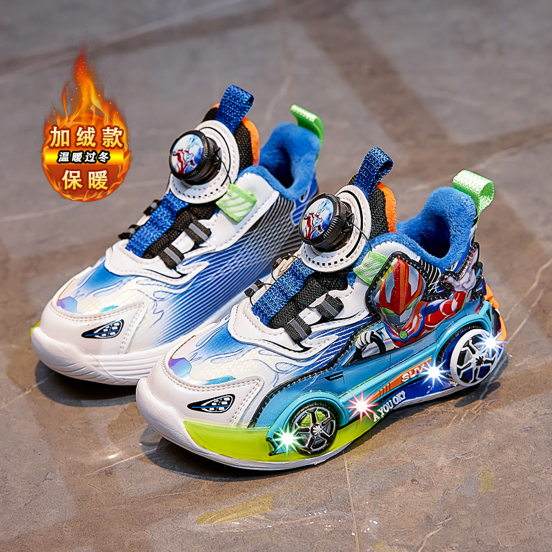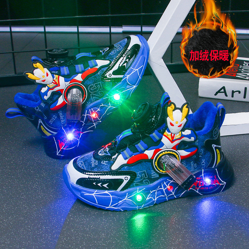 男童二棉鞋子发光鞋儿童加绒鞋男旋转扣男宝运动鞋防滑男孩亮灯鞋