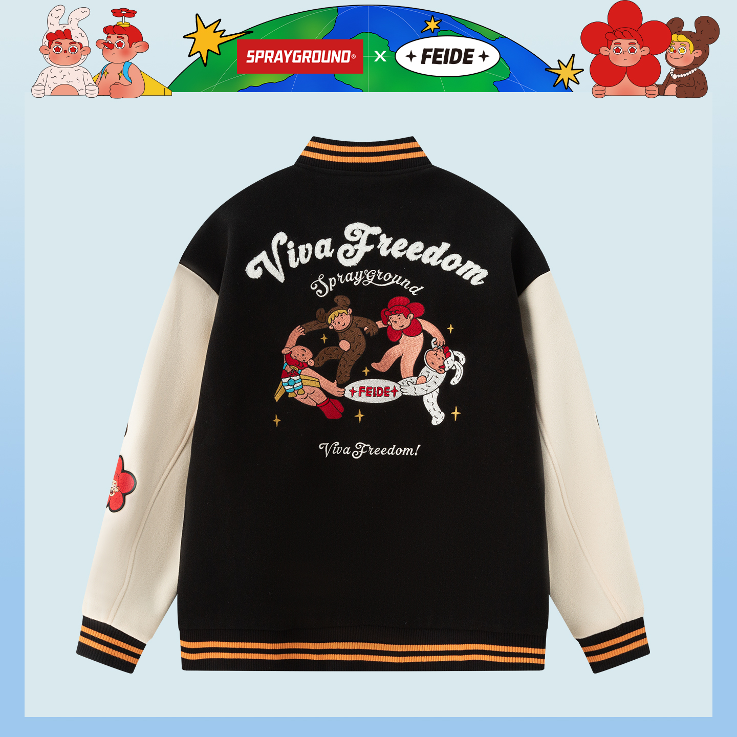 SprayGroundFEIDE联名鲨鱼嘴秋冬毛巾绣棒球服夹克男女宽松外套