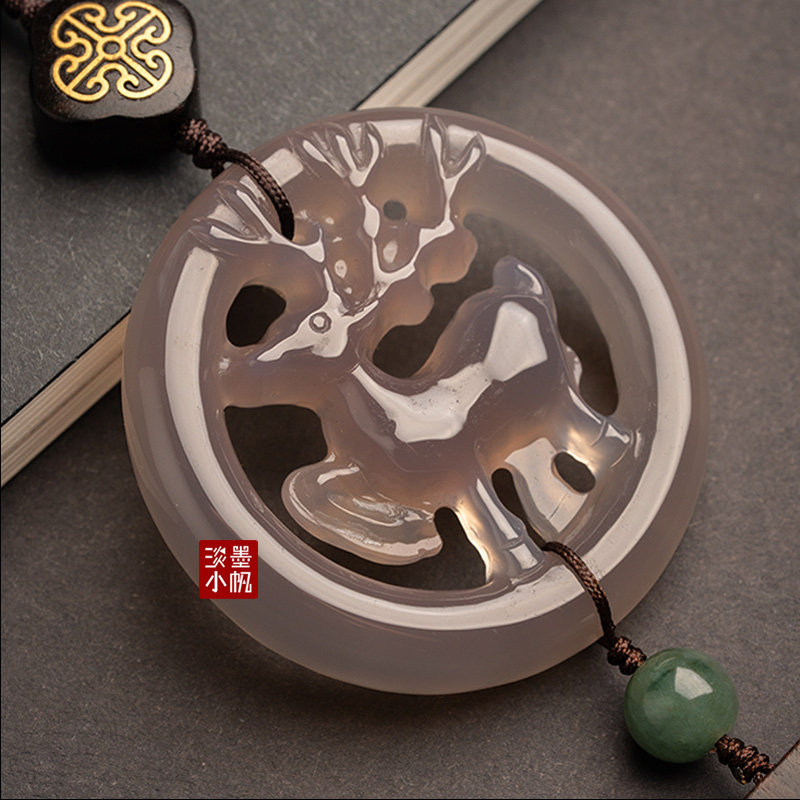 灰玉髓小鹿车挂一路平安