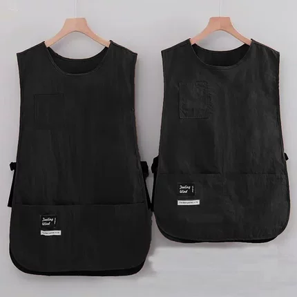 厨房做饭防泼水围裙工装风多口袋套头围腰无袖家用防污背心式围裙