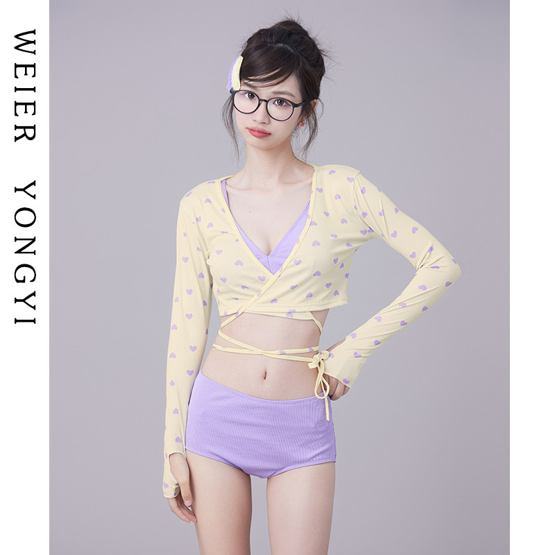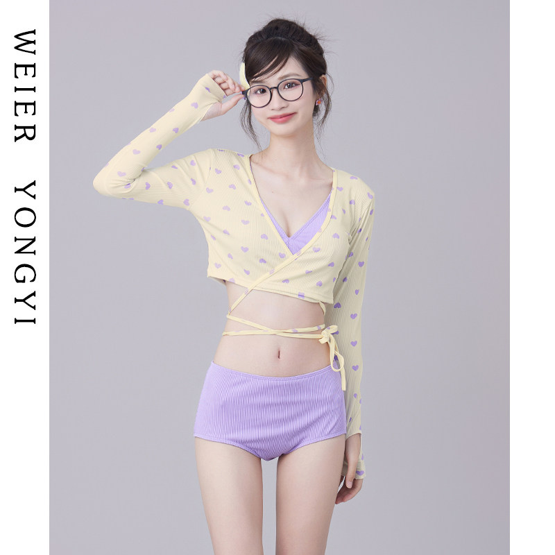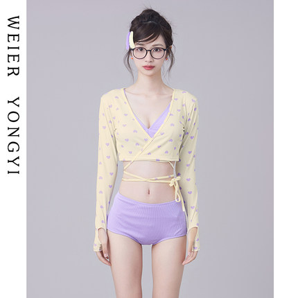 泳衣女夏分体长袖性感绑带三件套高腰遮肚少女沙滩度假泡温泉泳装