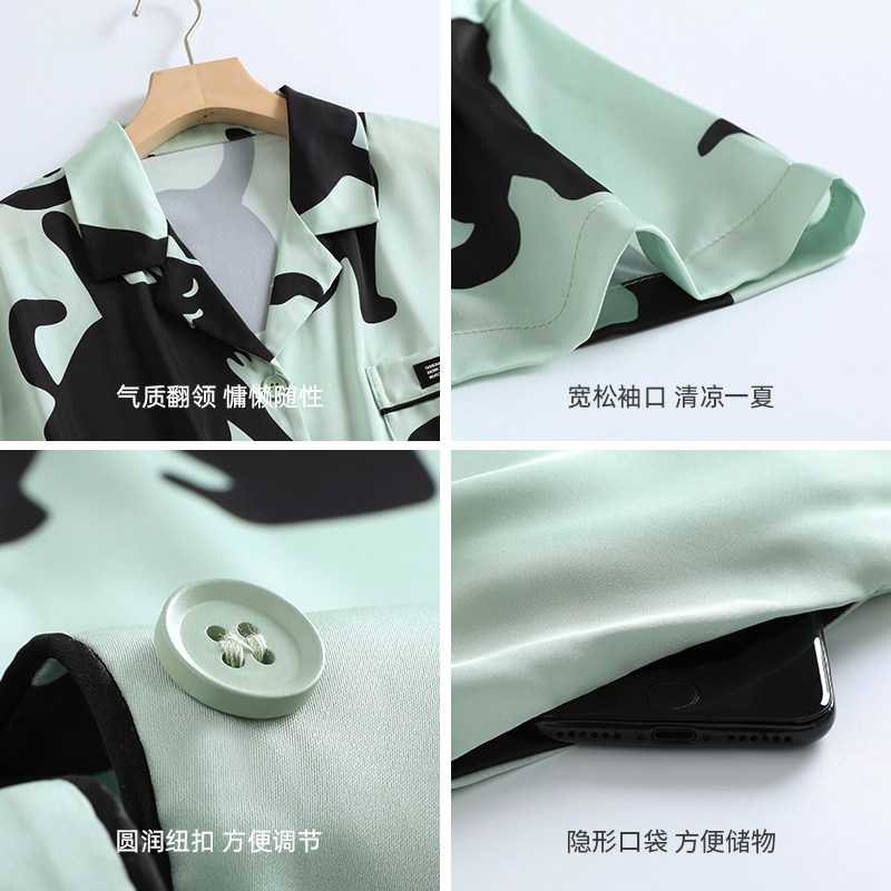 睡裙女夏季冰丝短袖薄款夏天长款睡衣仿真丝绸中长裙高级感家居服