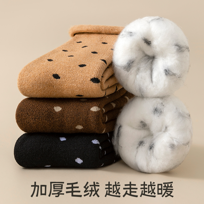 羊毛袜子女冬季中筒袜加绒加厚保暖月子袜秋冬长袜超厚雪地睡眠袜
