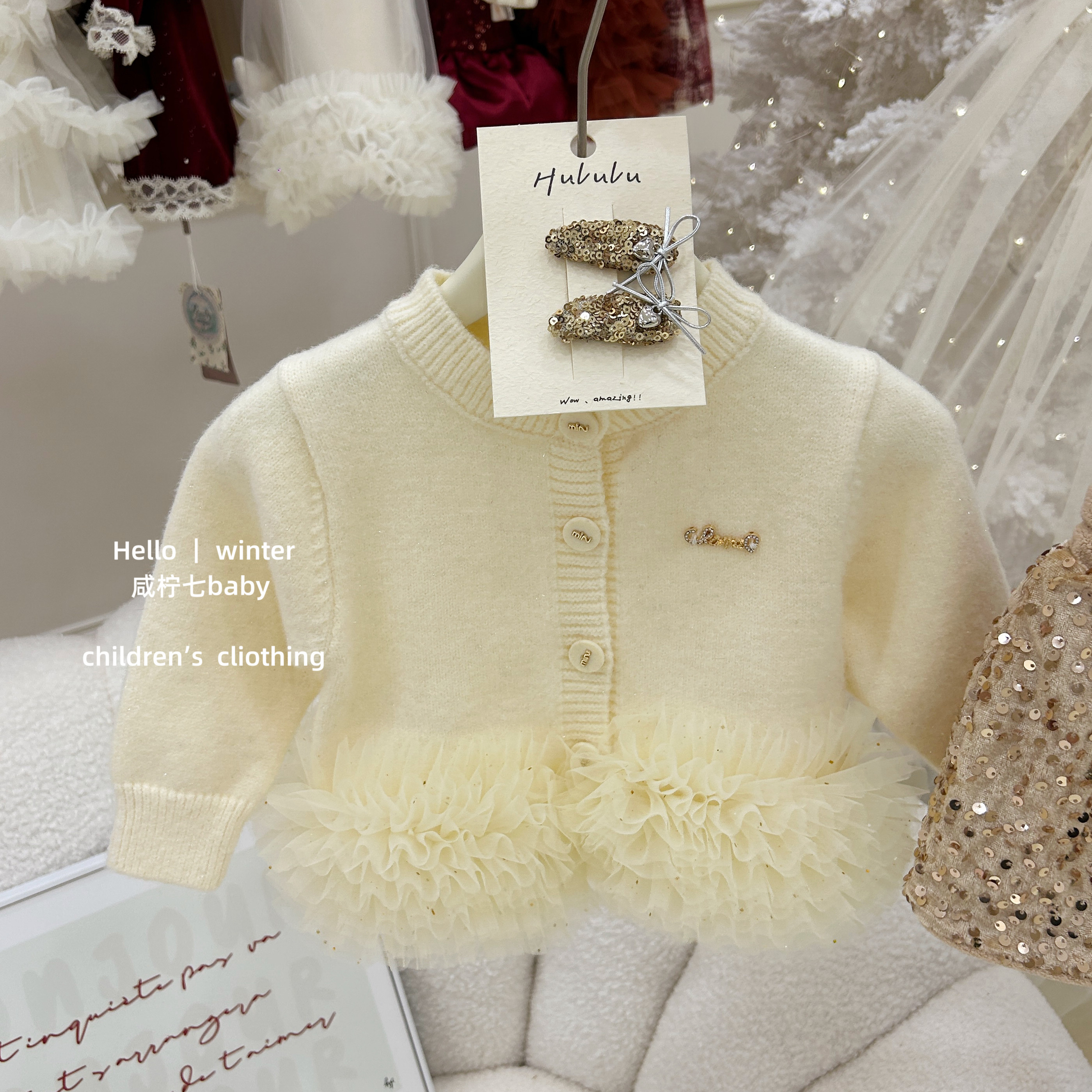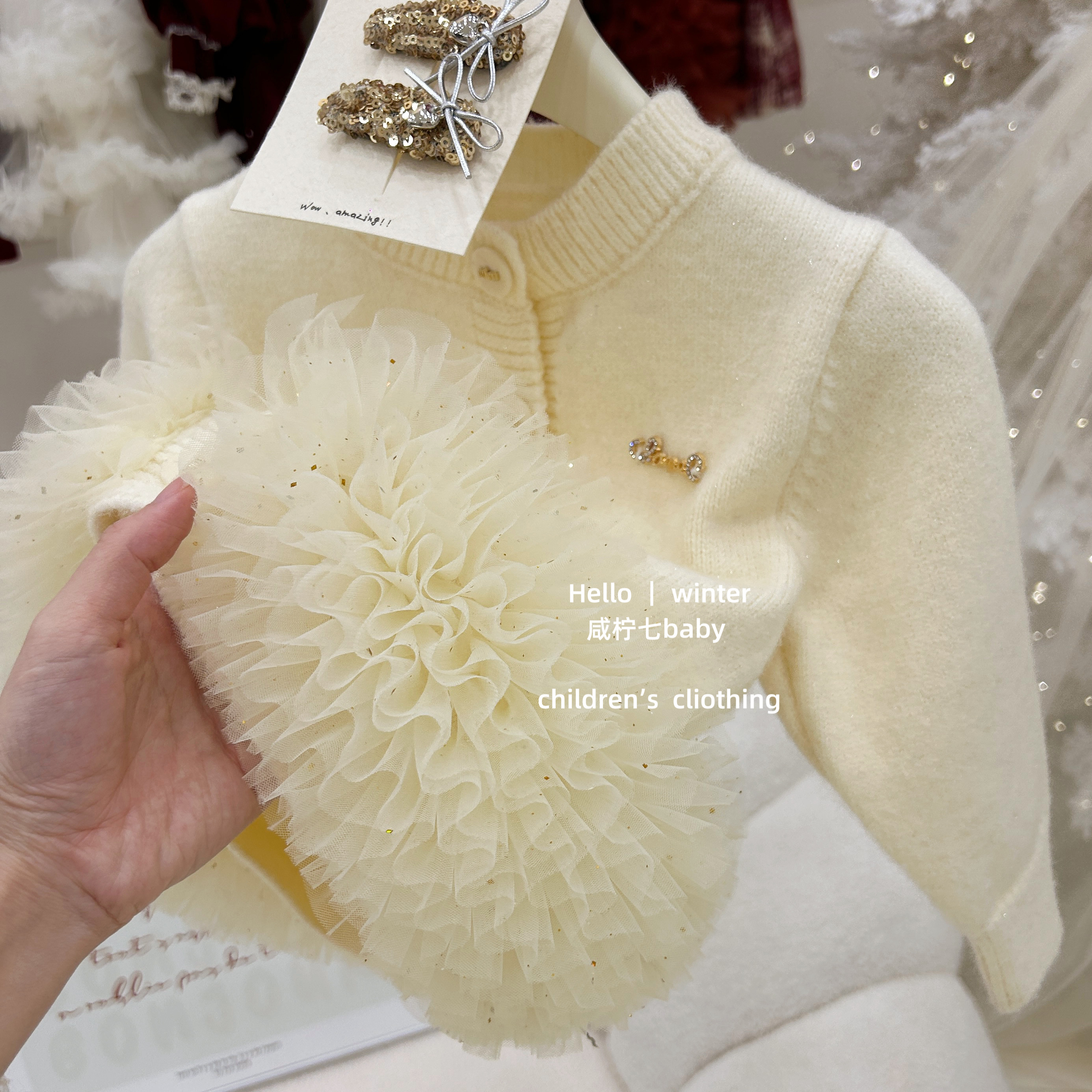 鎏金!女童秋冬套装网纱毛衣