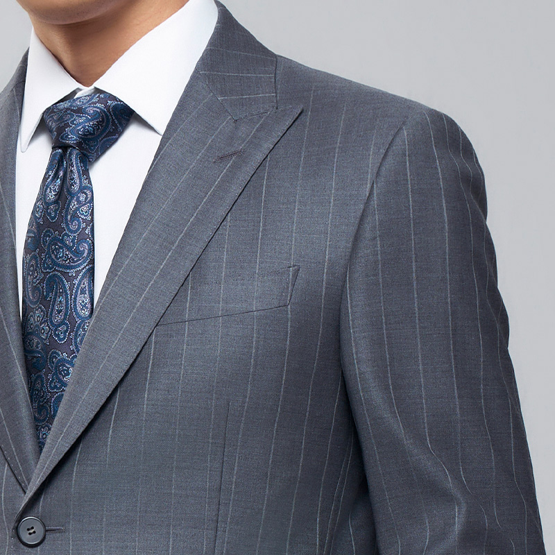【商场同款】金利来秋冬男高支数纯羊毛宽条纹戗驳领正装西服套西