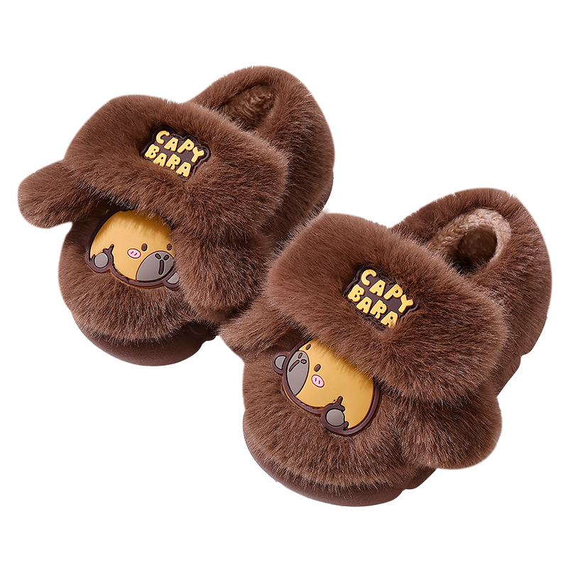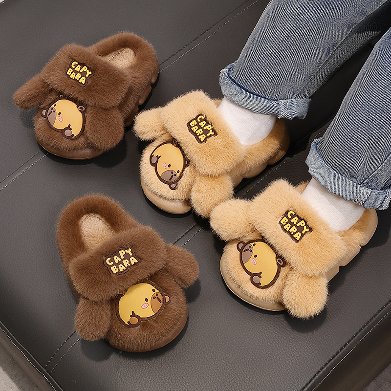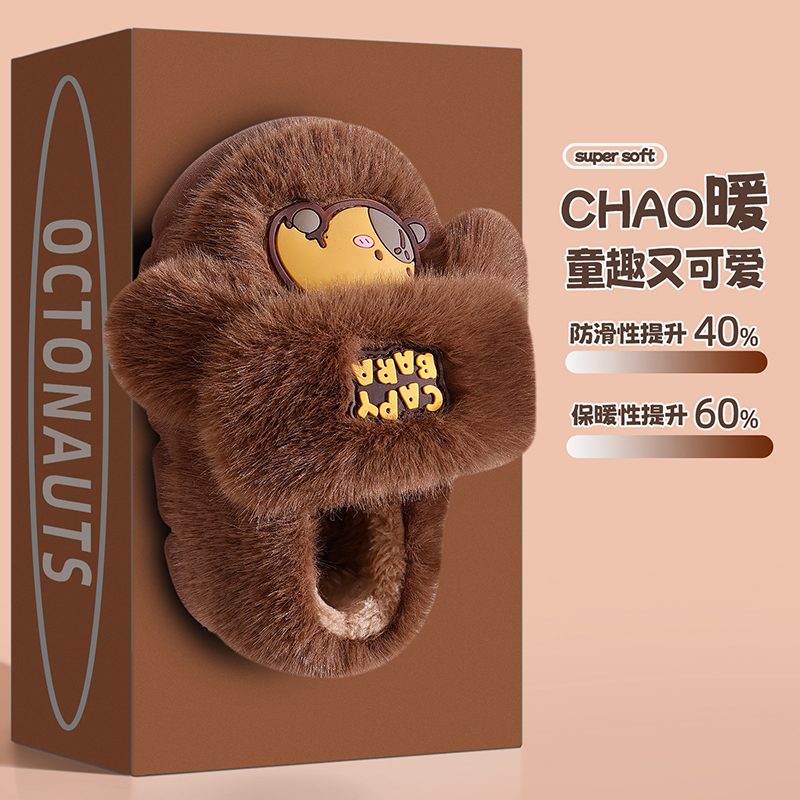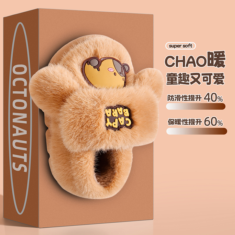 男童棉拖鞋冬天儿童可爱卡皮巴拉毛绒拖鞋女宝宝家居加厚包跟棉鞋