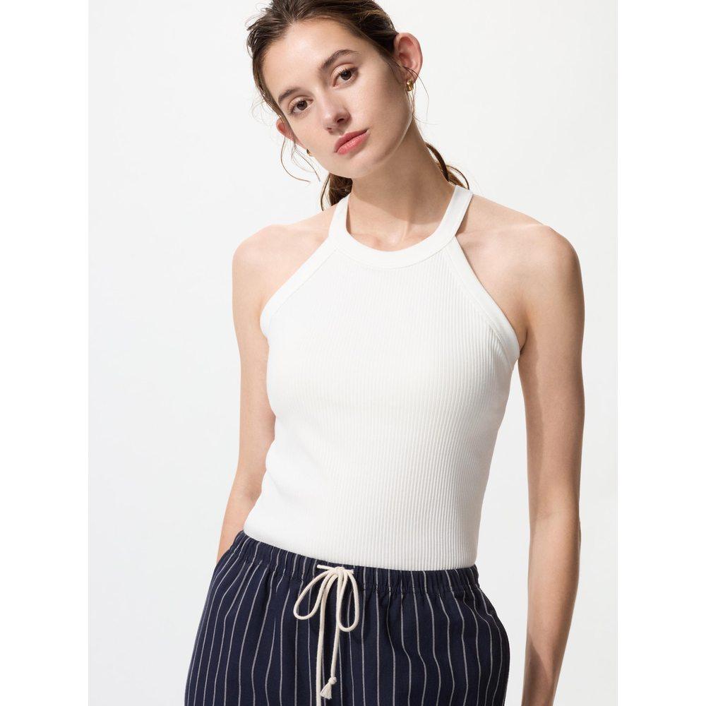 日潮跑腿UNIQLO优衣库 女款挂脖文胸背心 00 WHITE XS 473990上衣