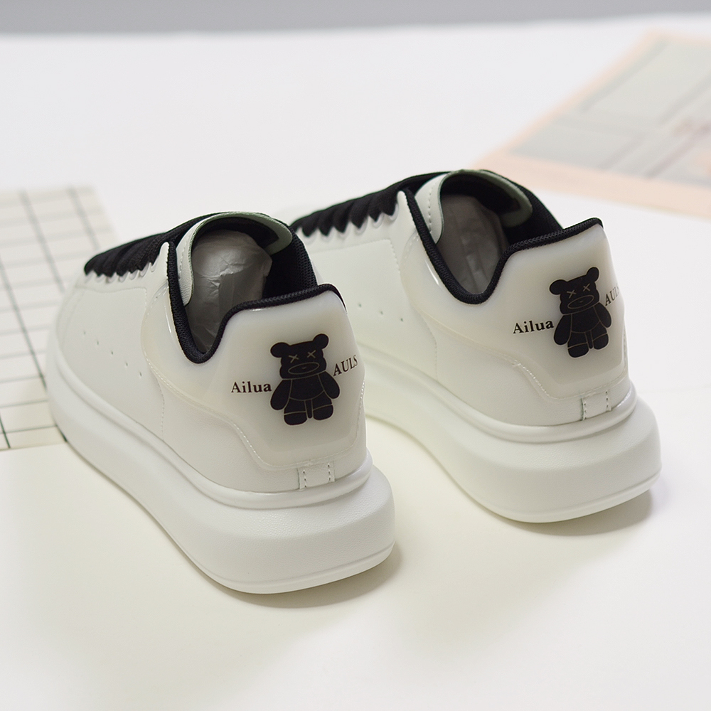 小白鞋韩版厚底男女情侣款小熊系带圆头学生运动板鞋百搭休闲鞋