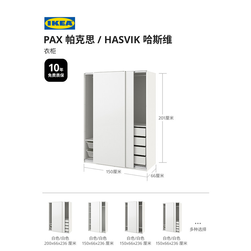 IKEA宜家PAX帕克思哈斯维衣柜卧室衣柜家用小户型双门衣橱储物柜