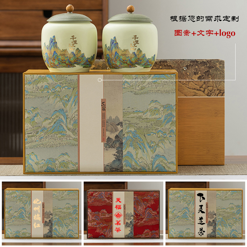 新中式高档陶瓷茶叶罐密封罐空瓷罐防潮罐龙井茶红茶绿茶礼盒包装