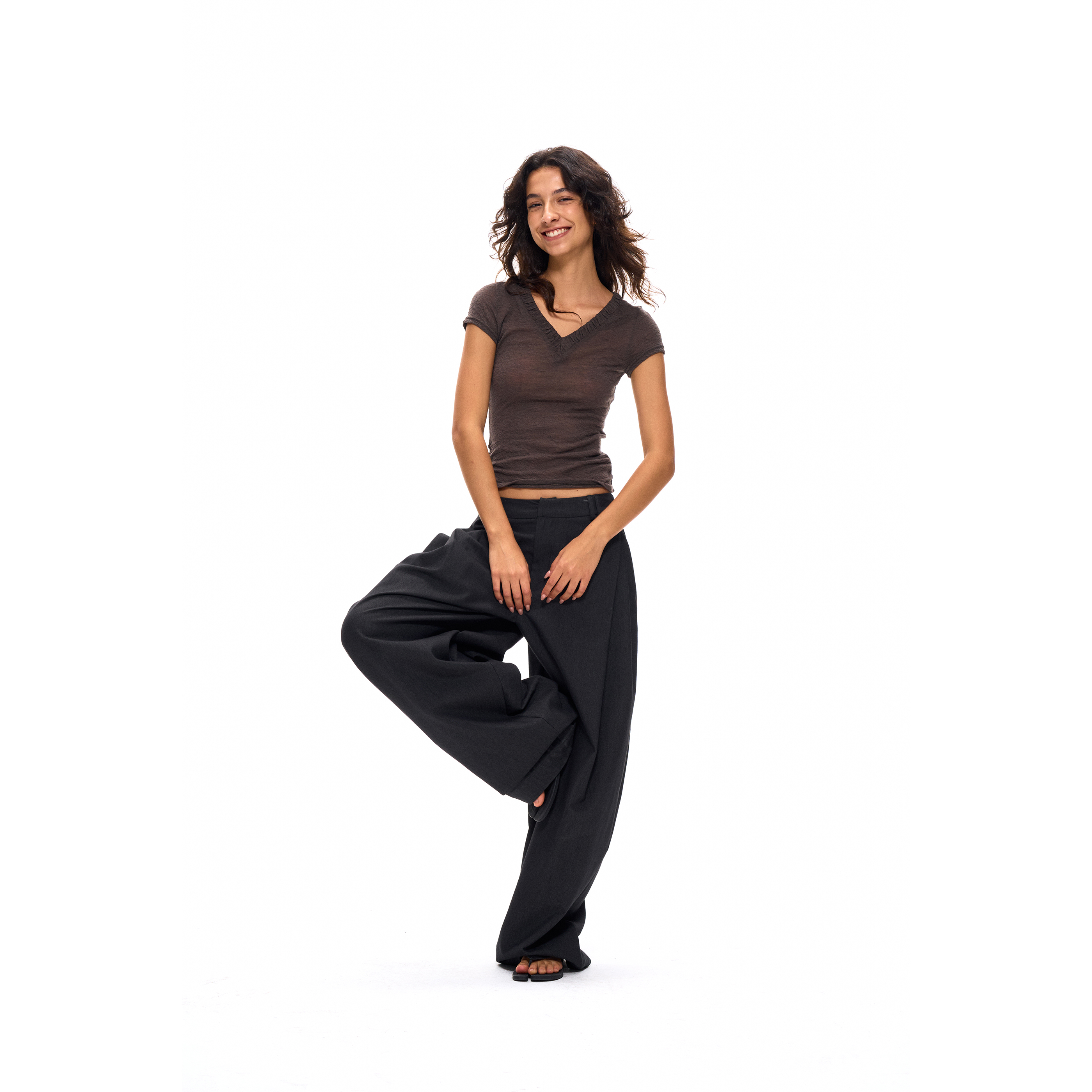 ACOSEY 25SS 垂感弯刀侧边压褶阔腿慵懒拖地西装裤