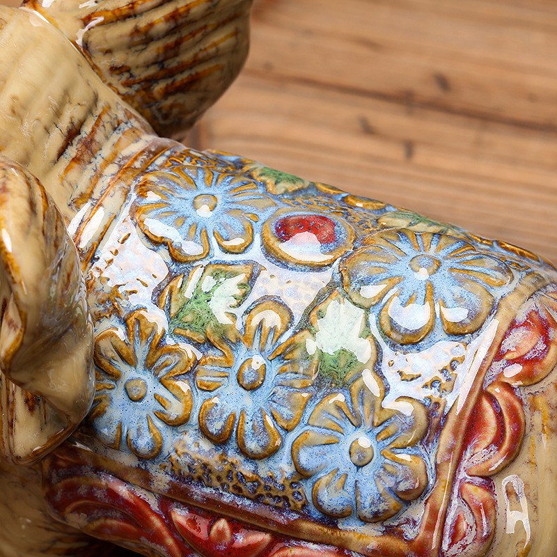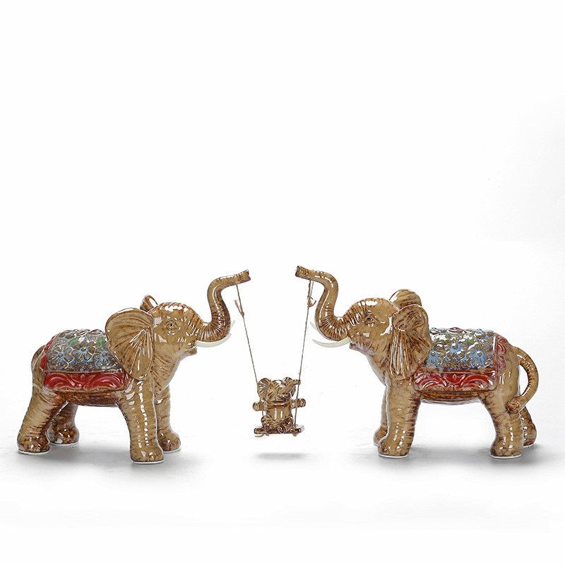 新款陶瓷工艺品外贸母子象家居摆件中式动物窑变瓷器创意摆饰定制
