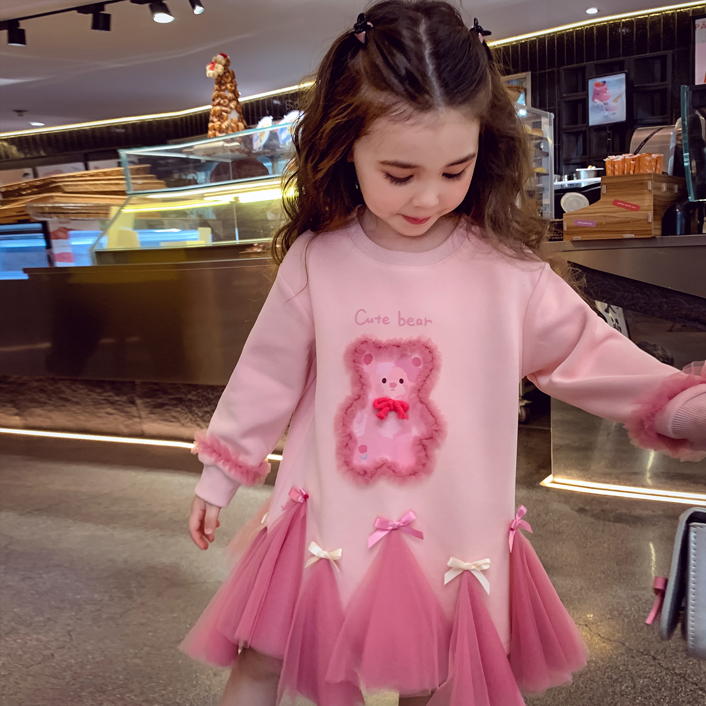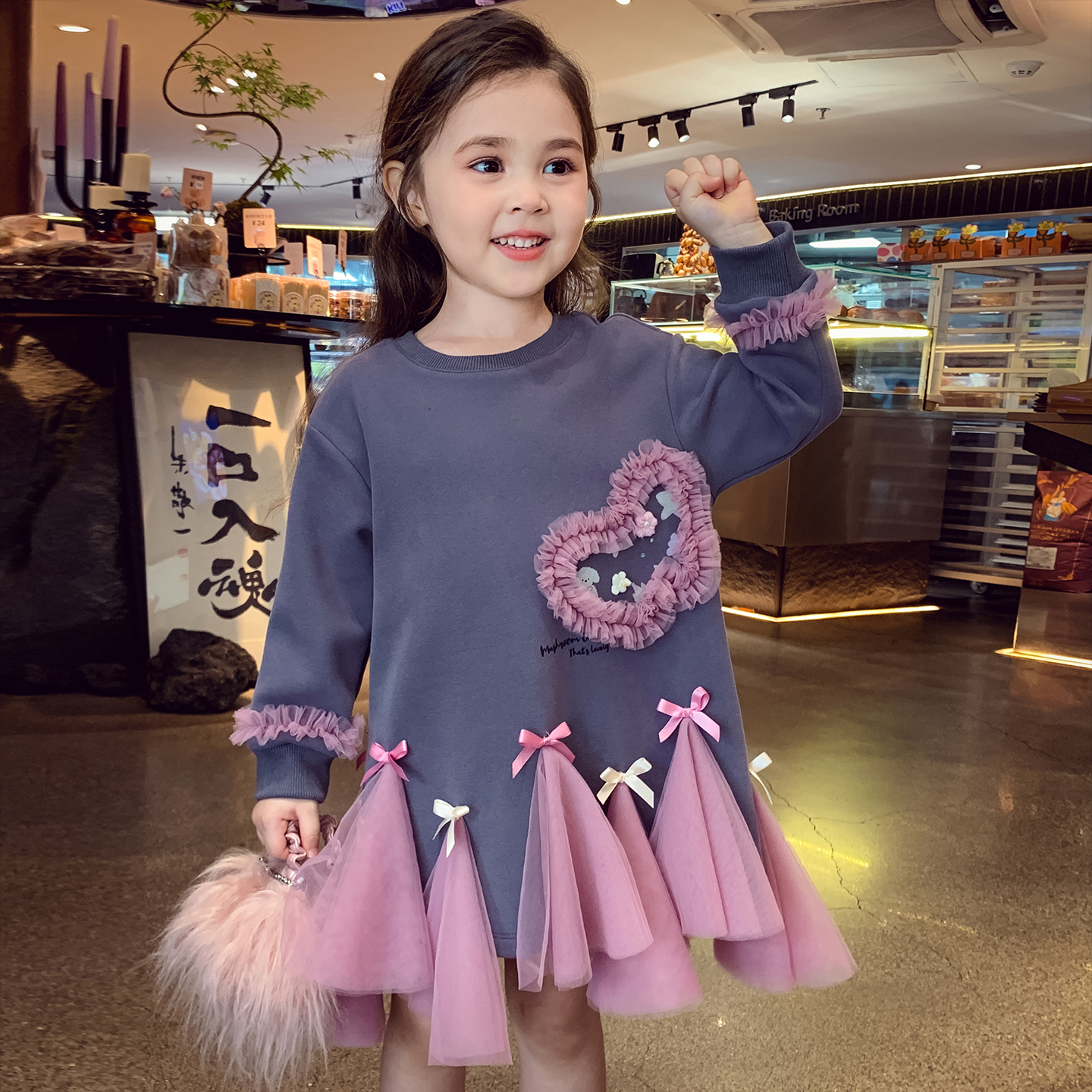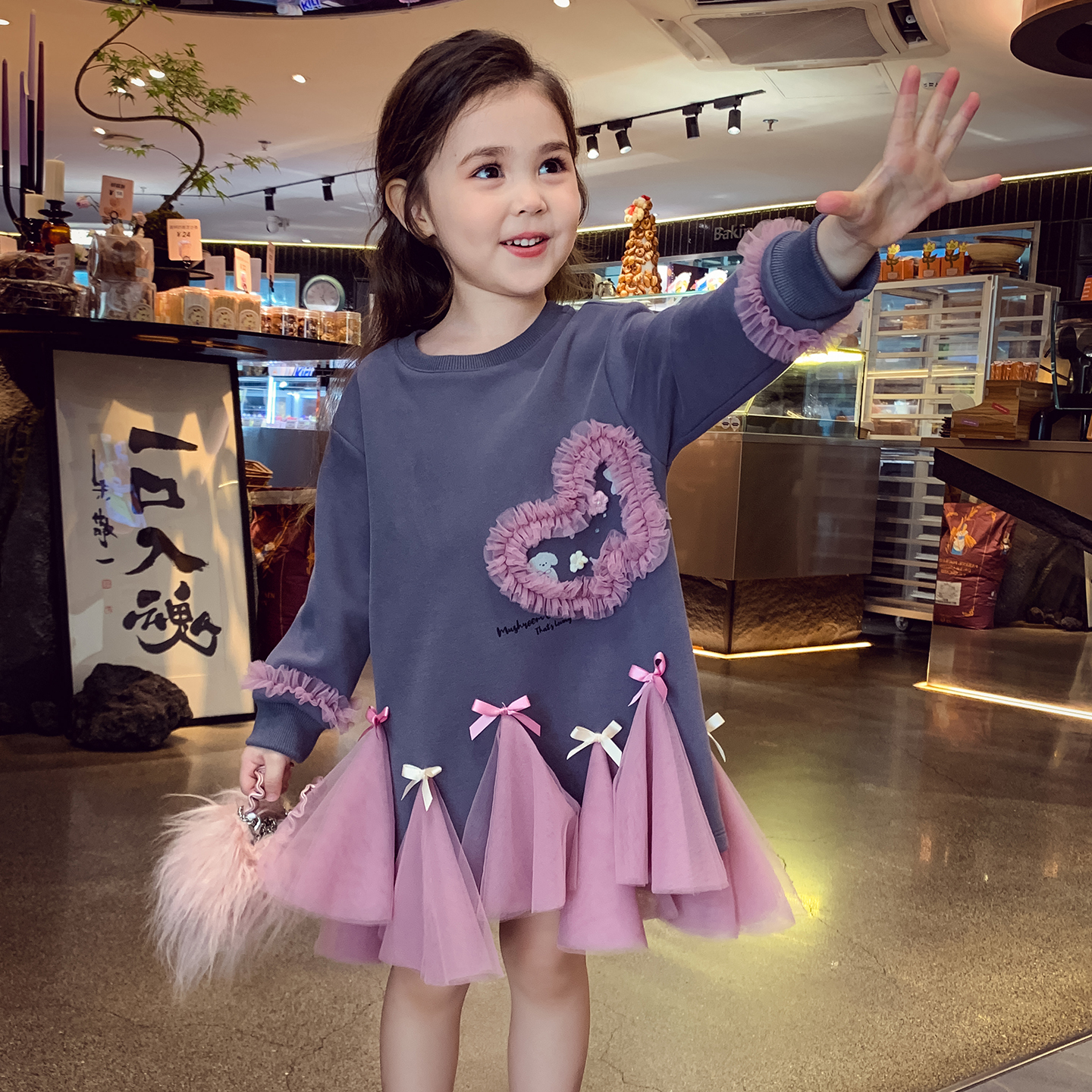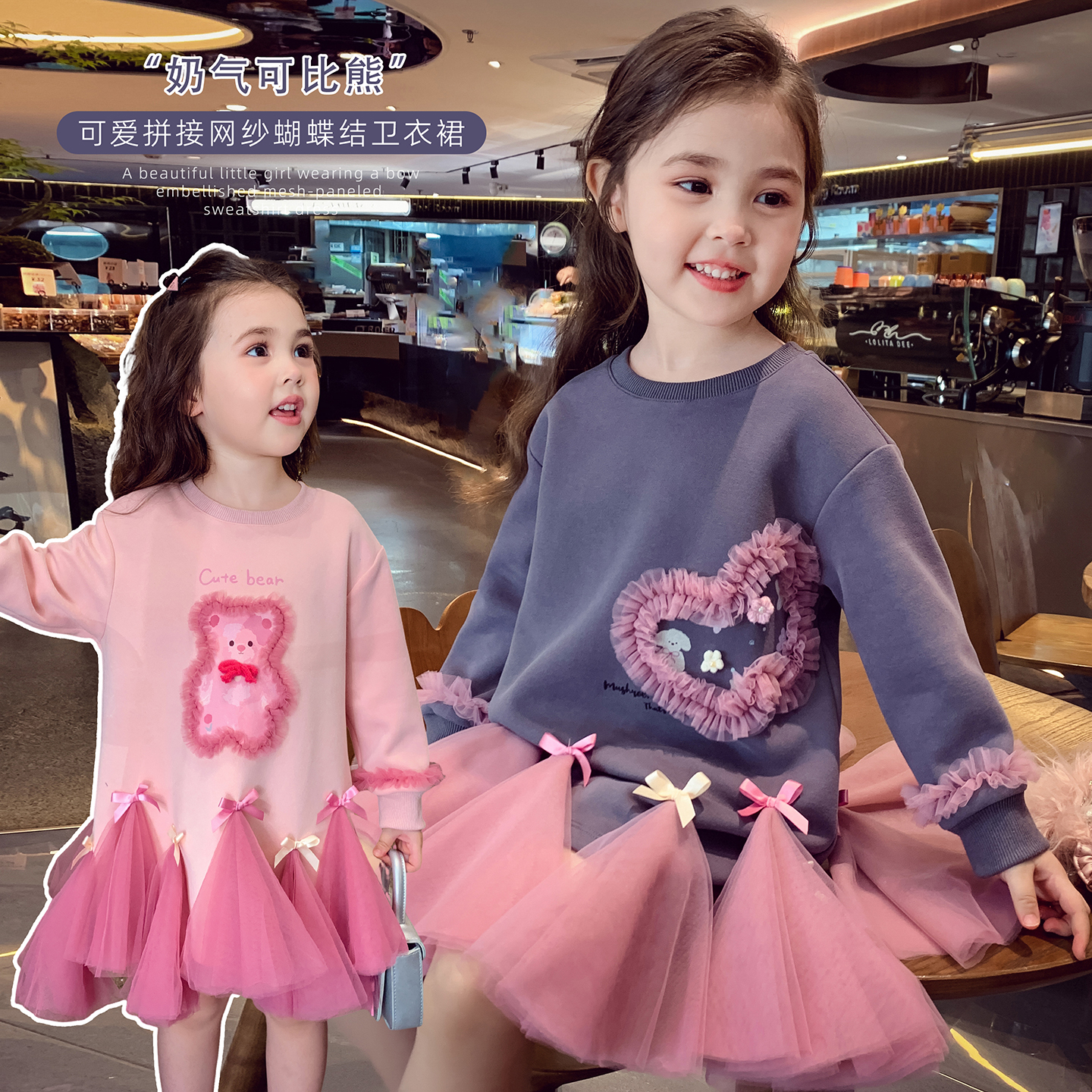米米哈罗女童连衣裙秋冬2025新款韩版儿童拼接网纱长袖公主卫衣裙