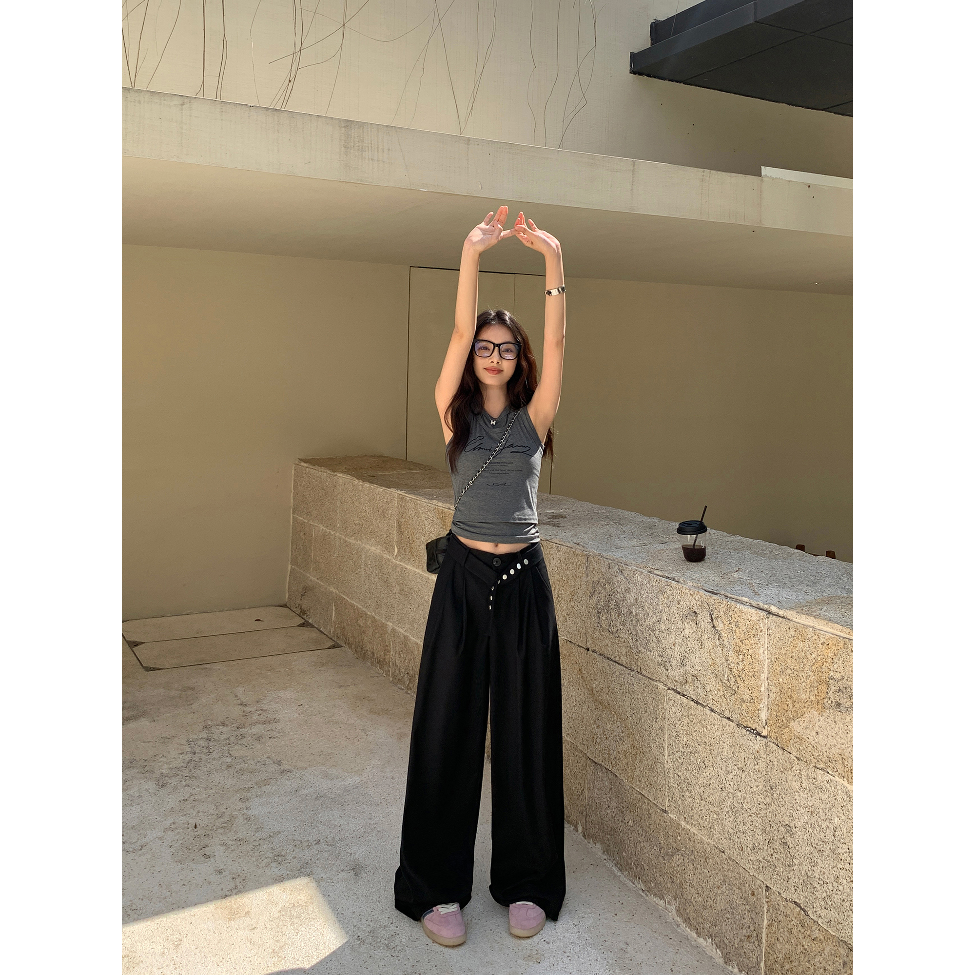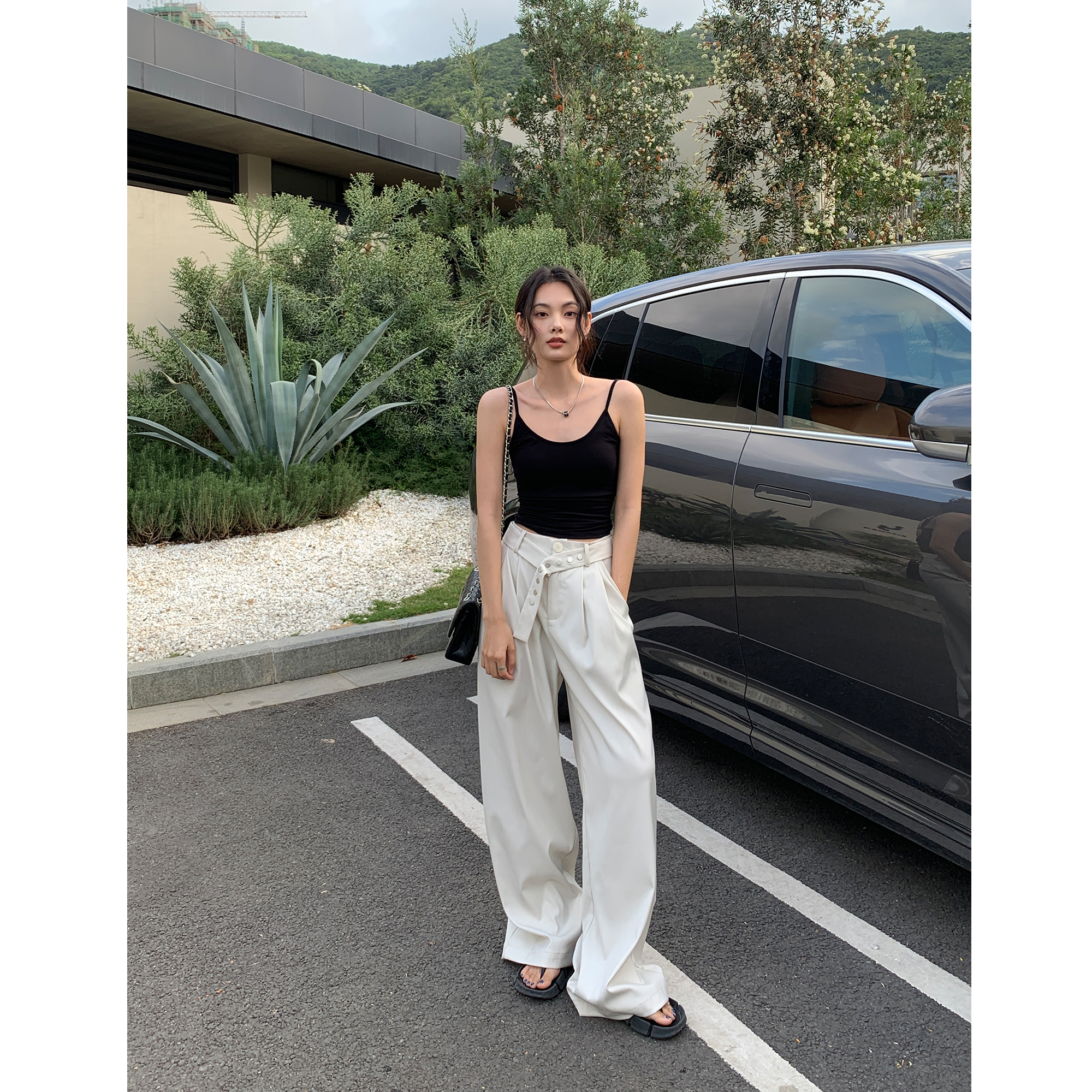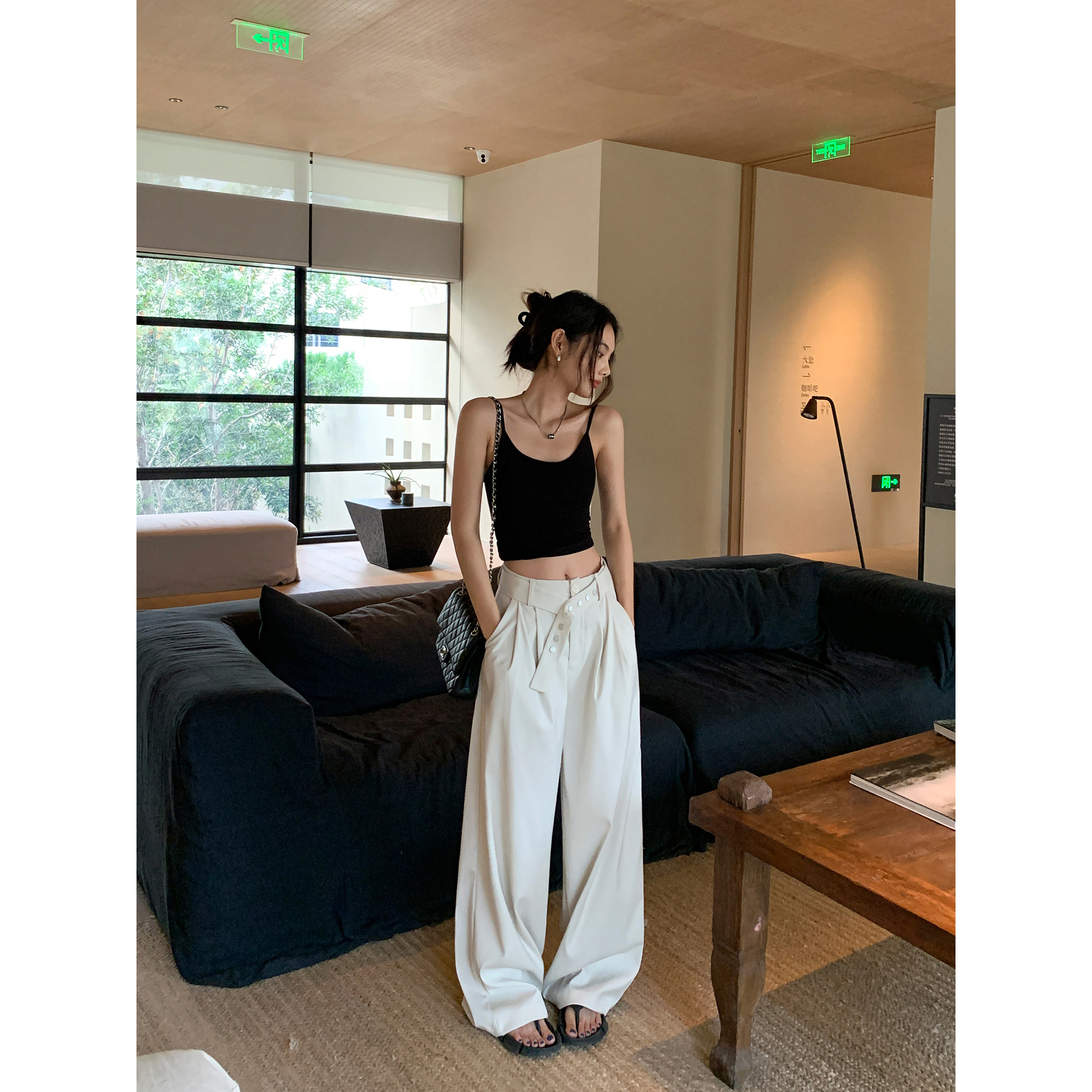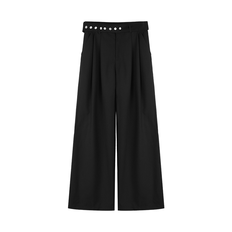 辰米范 黑色阔腿西装裤女夏季新款设计感宽直筒长裤高腰休闲裤