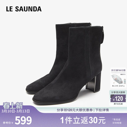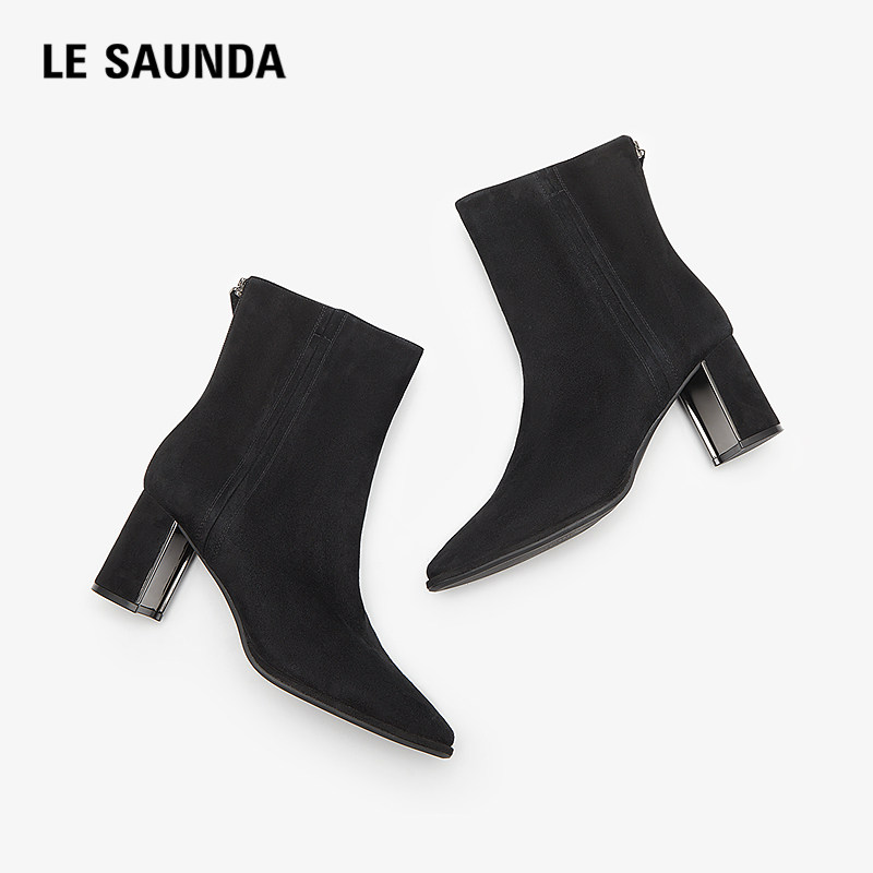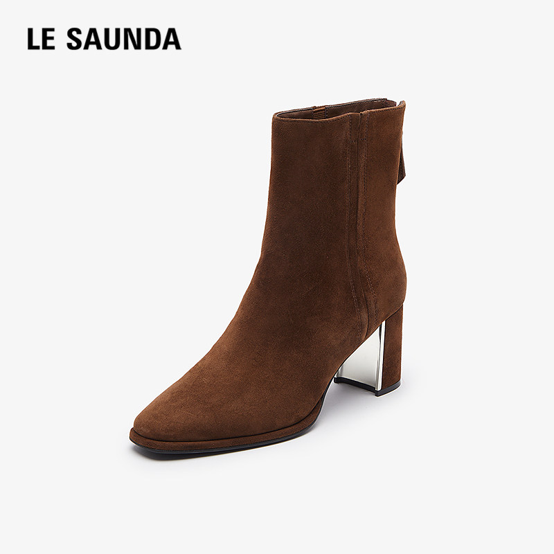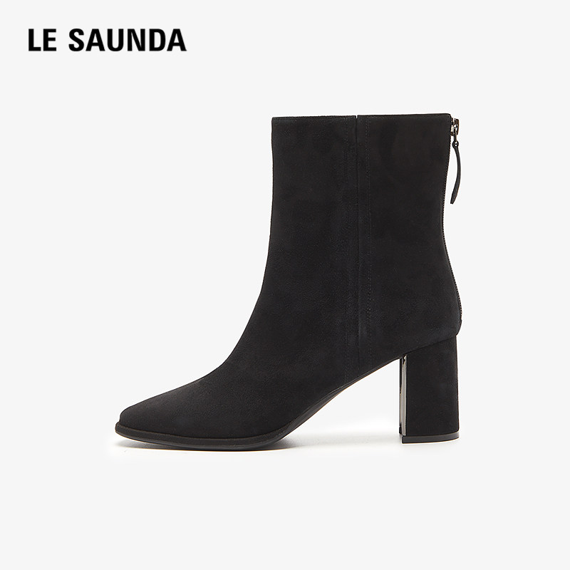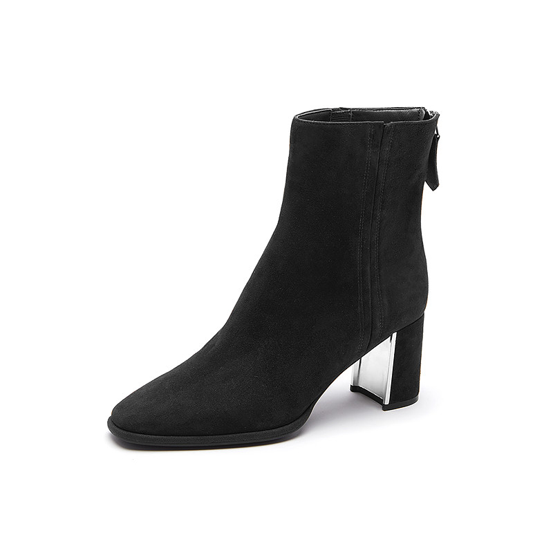 莱尔斯丹秋冬新款商场同款加绒保暖圆头粗跟瘦瘦靴短靴女5T71707V