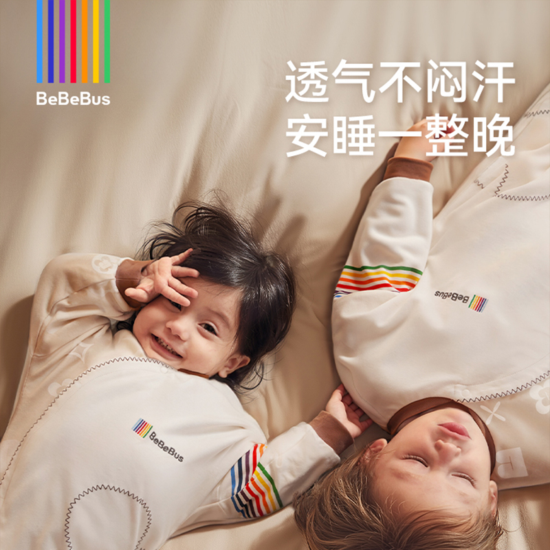BeBeBus婴儿睡袋秋冬儿童恒温分腿睡袋宝宝双层连体睡衣四季通用