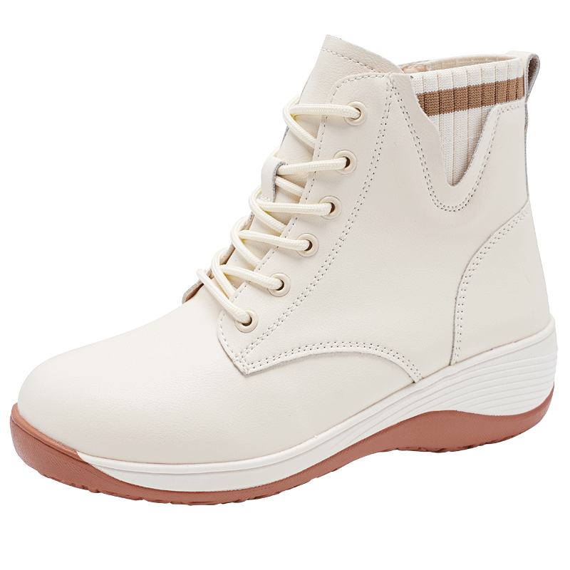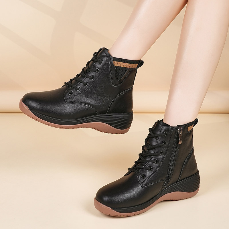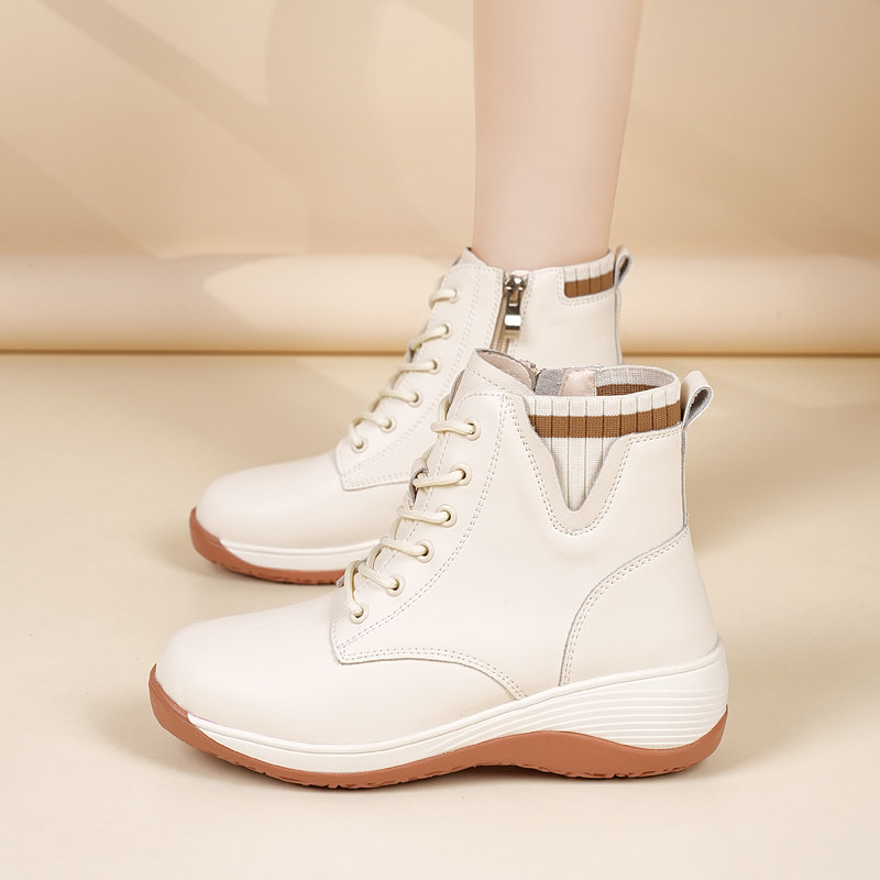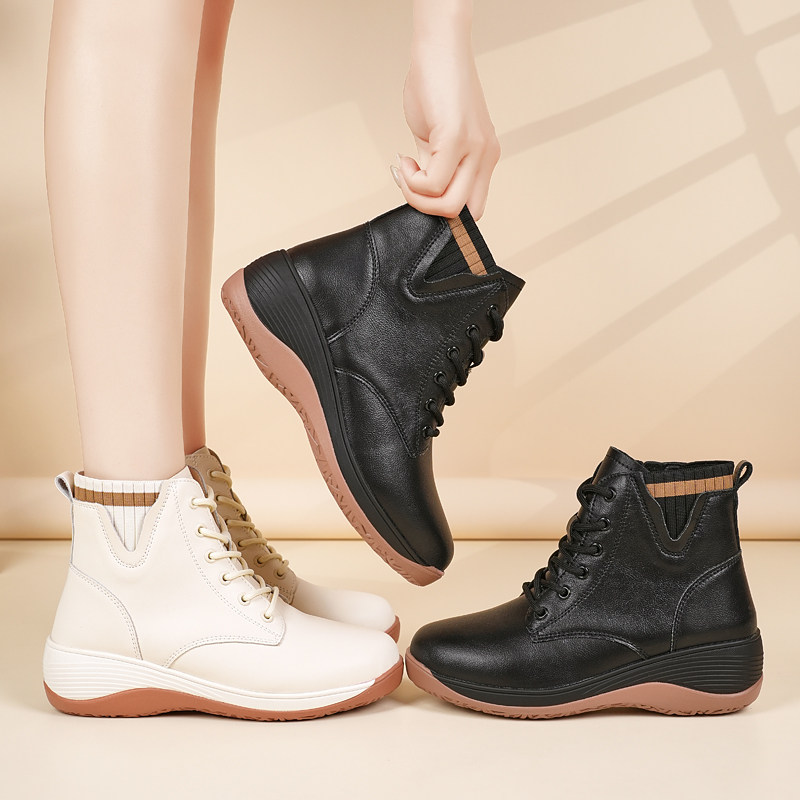 侧拉链短靴真皮女鞋软底防滑新款2025秋冬中年妈妈鞋女高帮小白鞋