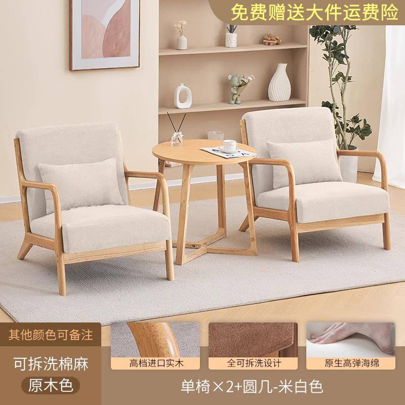 单人沙发阳台椅子家用小户型客厅卧室实木懒人单椅原木休闲椅躺椅
