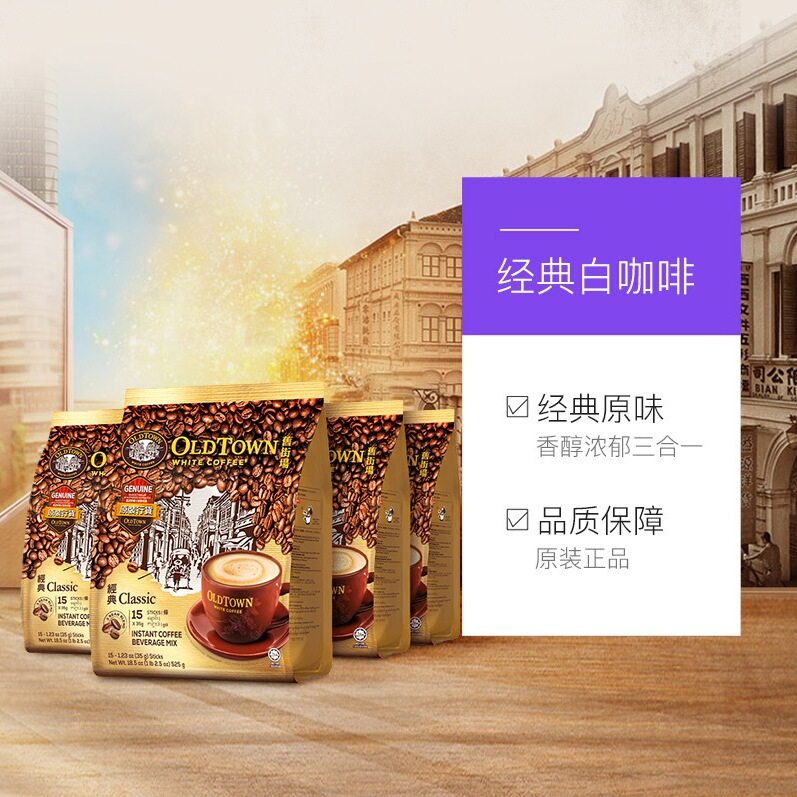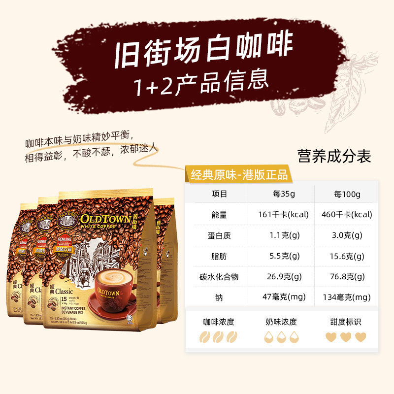 马来西亚进口旧街场白咖啡速溶三合一原味咖啡粉60条官方旗舰正品
