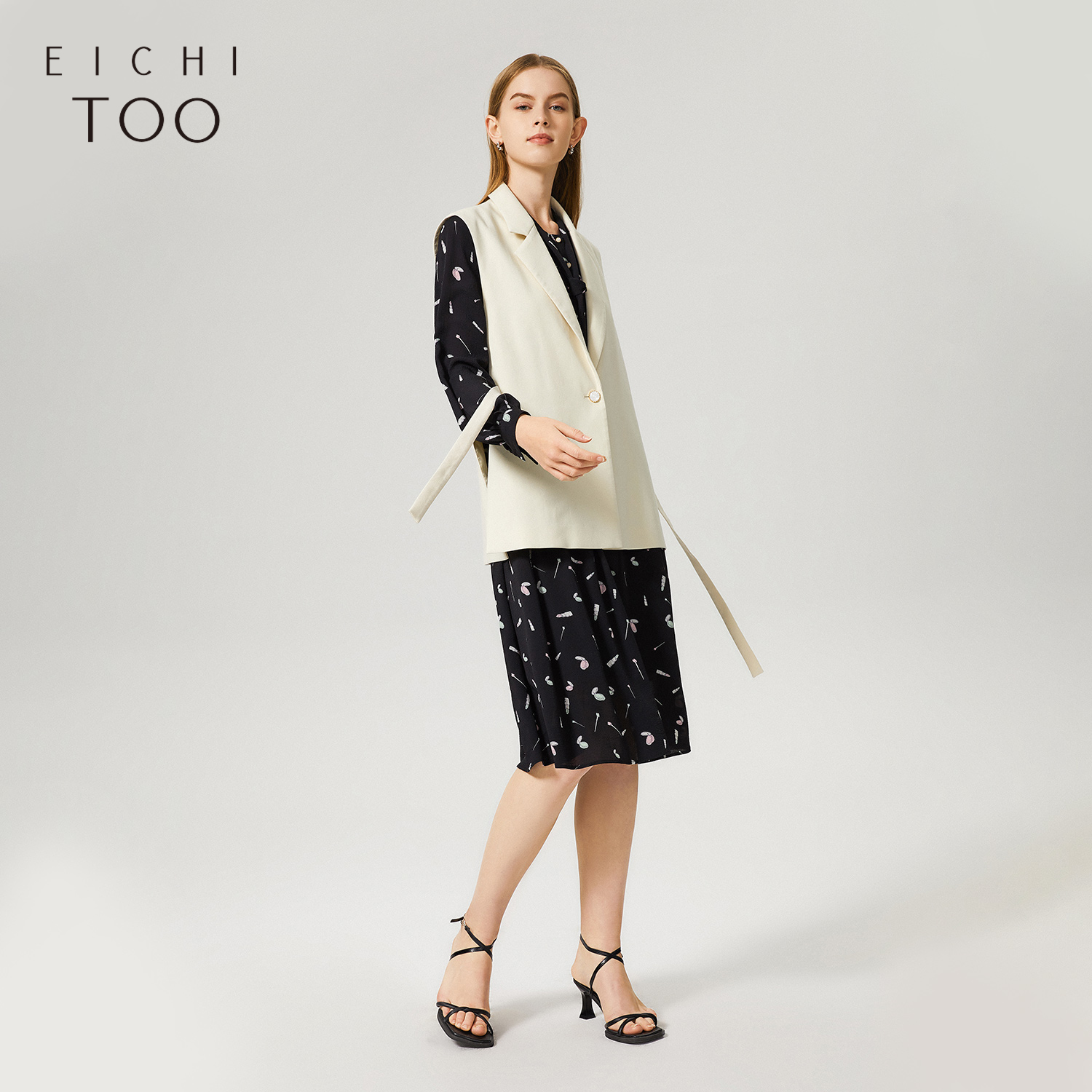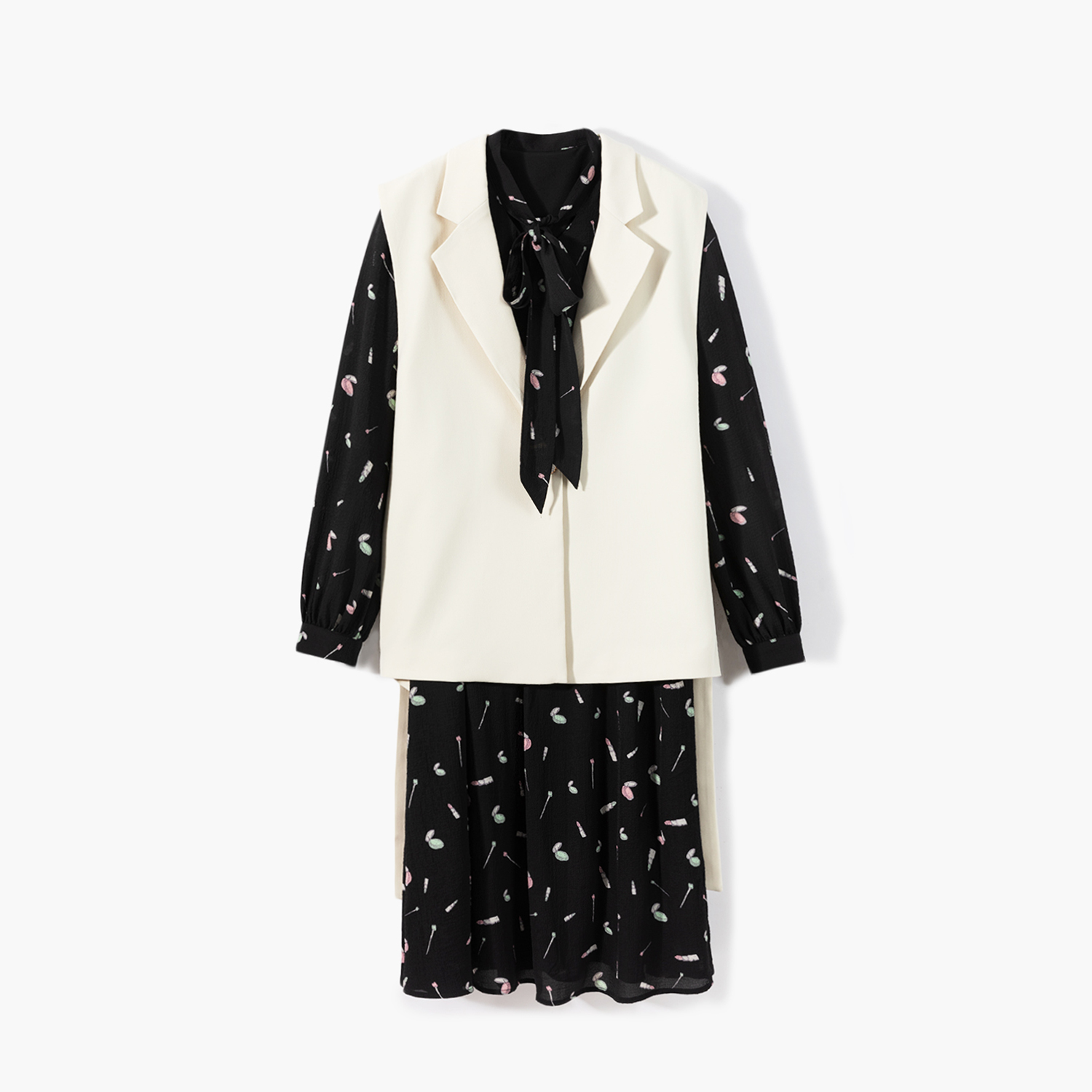 爱居兔连衣裙女春宽松两件式西装马甲搭配长袖连衣裙裙子女