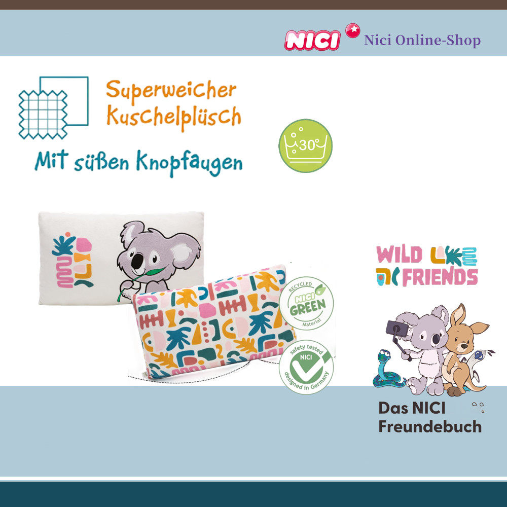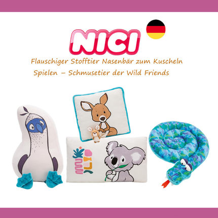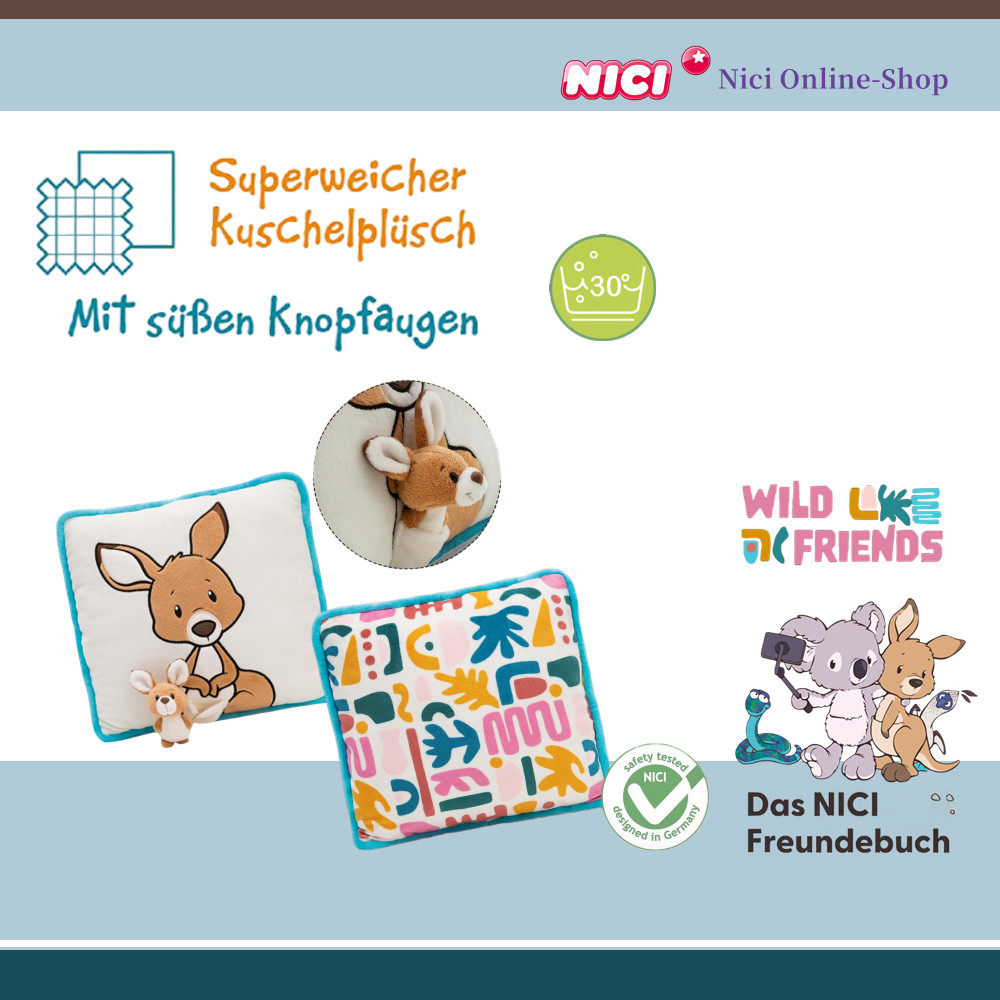 德国NICI专柜正品WildFriends考拉袋鼠蟒蛇鸟方形毛绒靠垫柔软