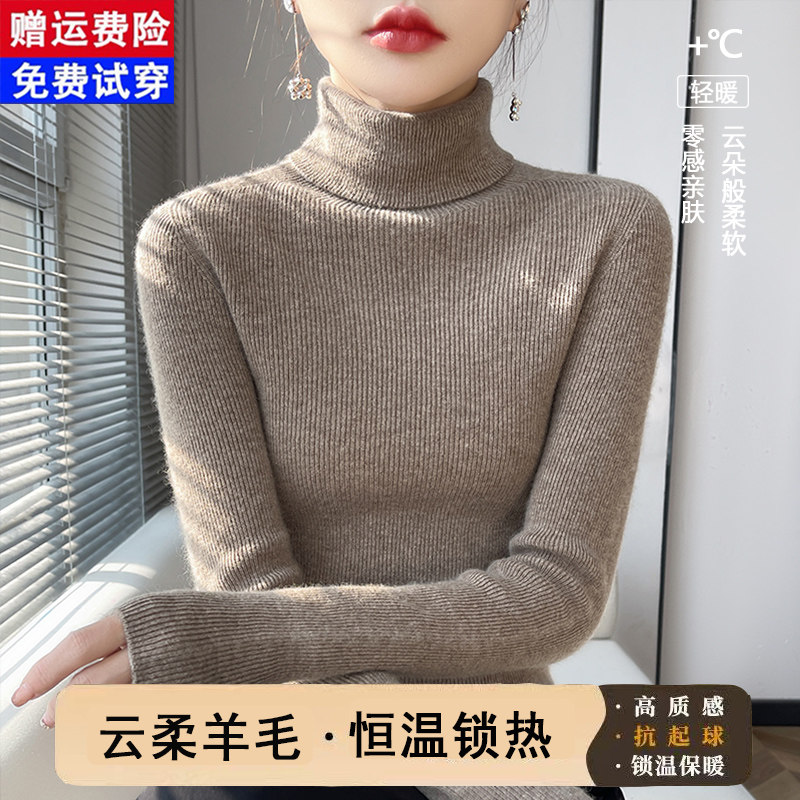 鄂尔多斯市加厚高领2025秋冬羊绒衫女修身毛衣内搭羊毛针织打底衫