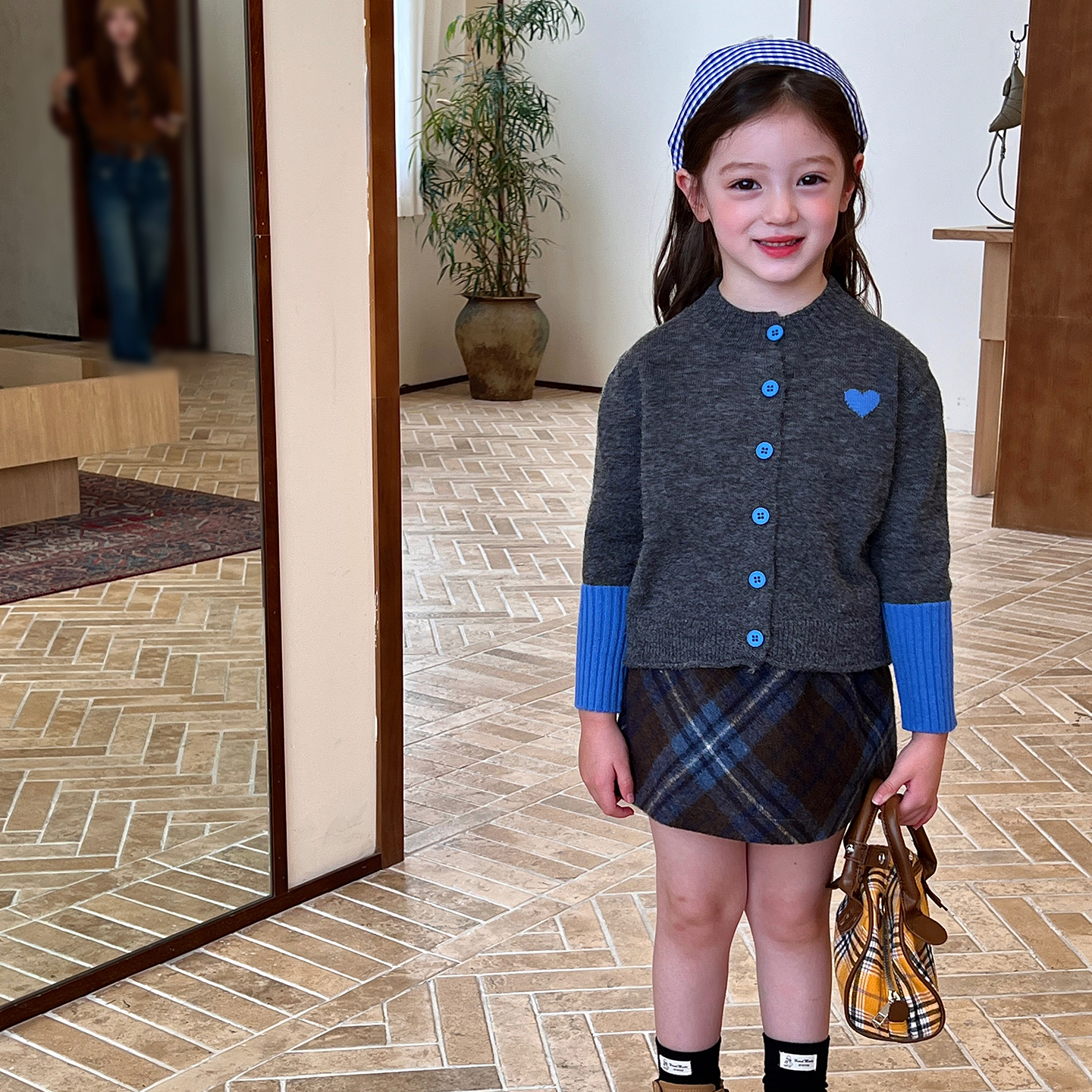 栀了成长记童装女童休闲百搭毛衣开衫秋季儿童宝宝简约撞色针织衫