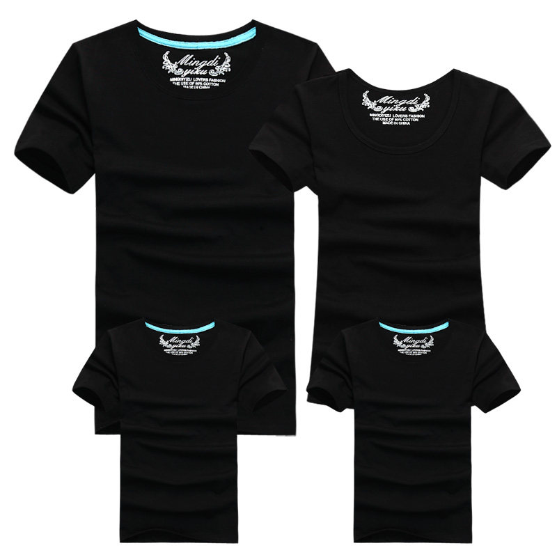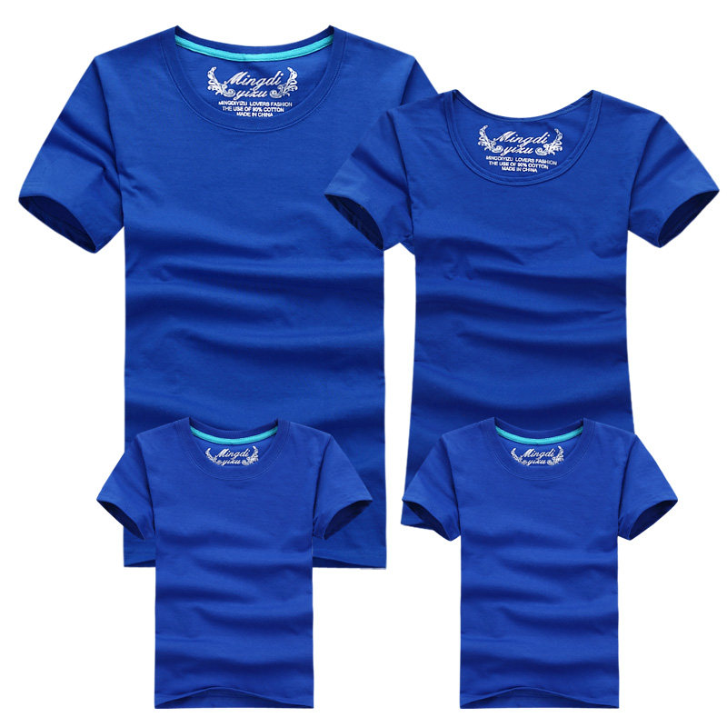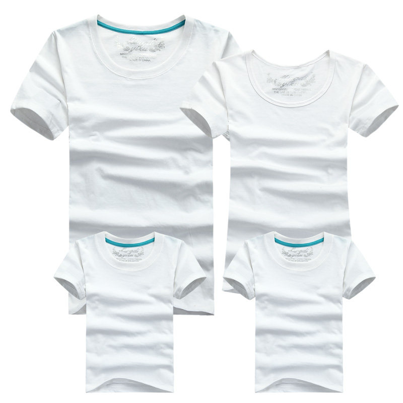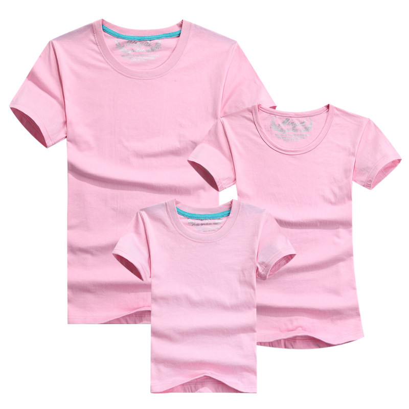 亲子装夏装2025夏季一家三口短袖纯色T恤男女儿童装定制班服logo