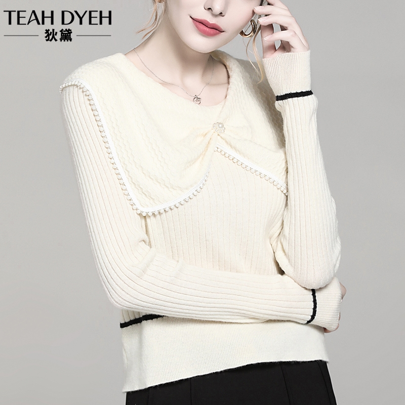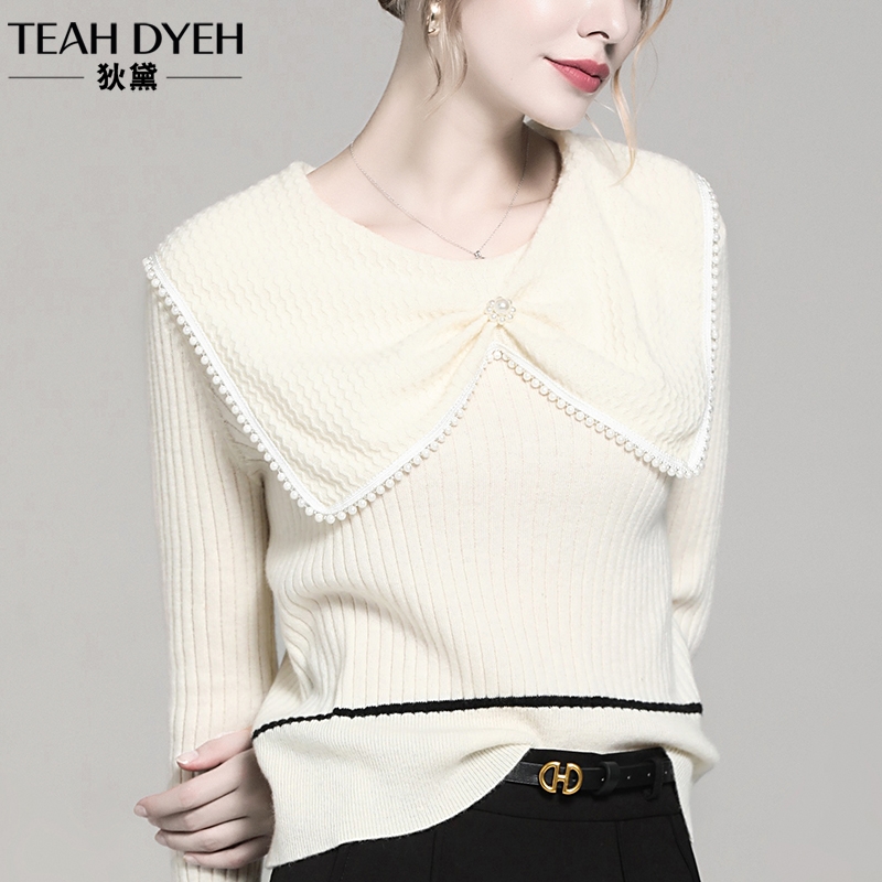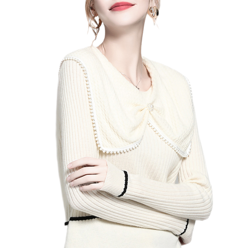 法式小众设计感娃娃领钉珠毛衣女短款内搭打底针织衫上衣秋冬爆款