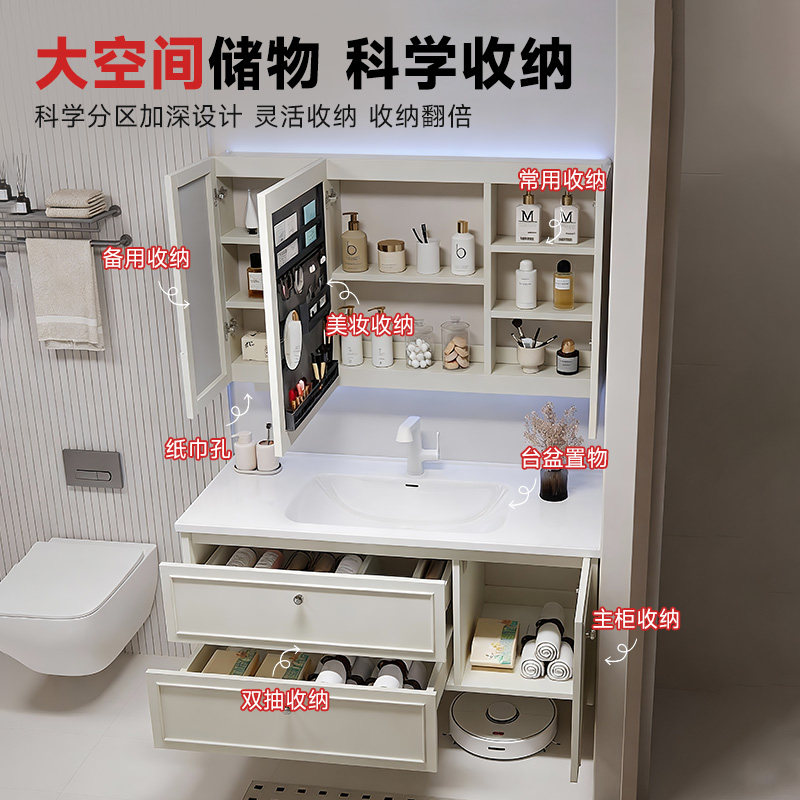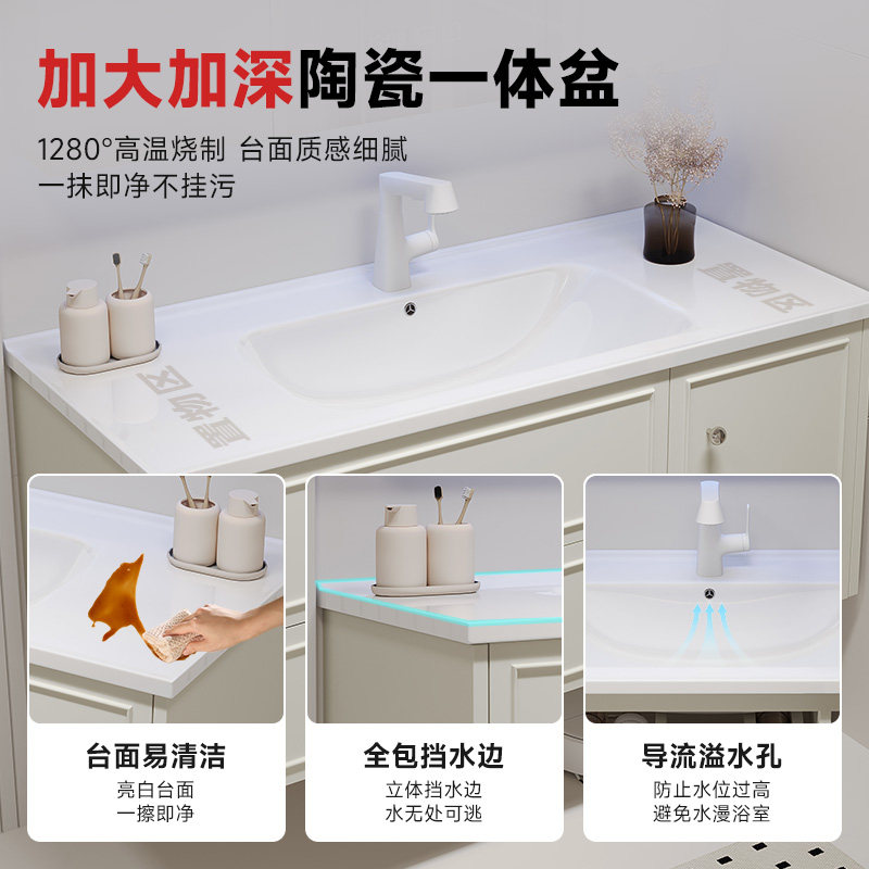 法式橡木浴室柜组合洗手盆卫生间洗漱台卫浴柜陶瓷一体盆智能定制