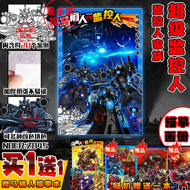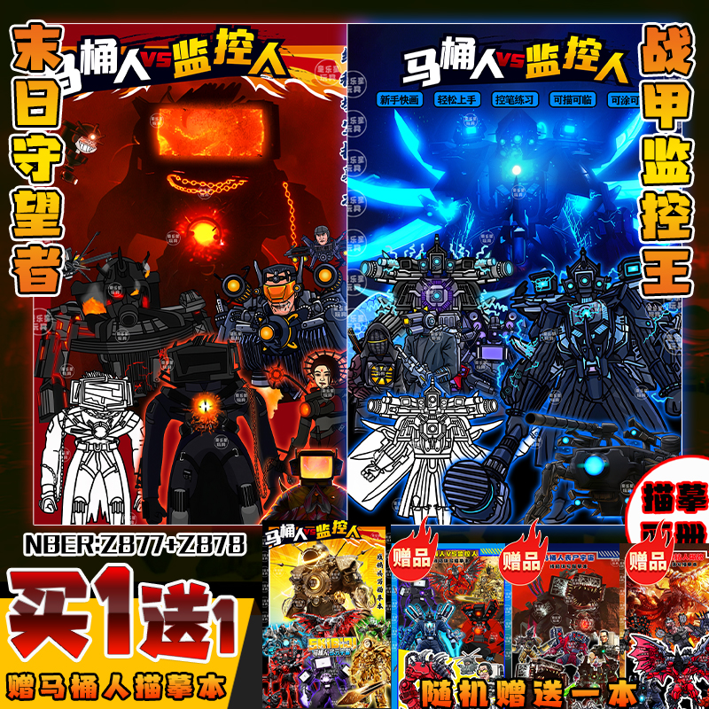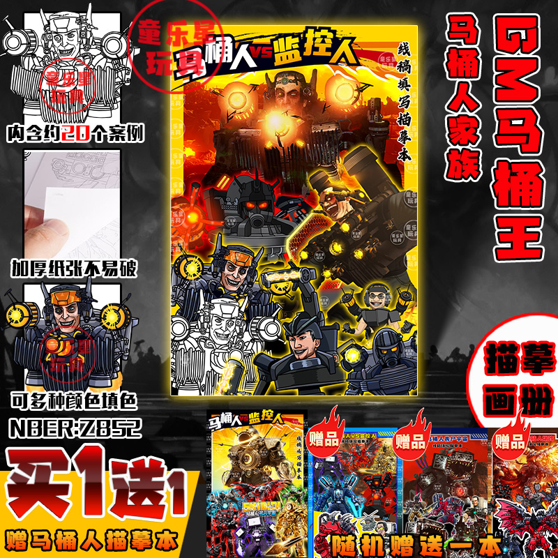 新款超级马桶人监控人素描线稿泰坦电视人描摹画册临摹儿童涂色本
