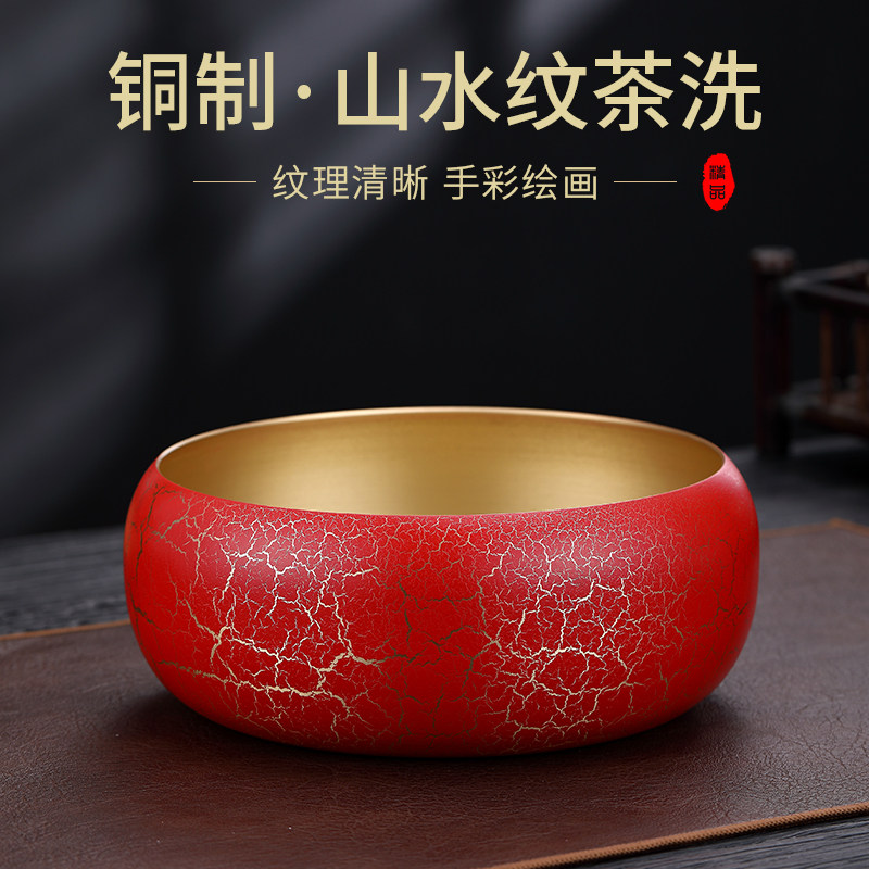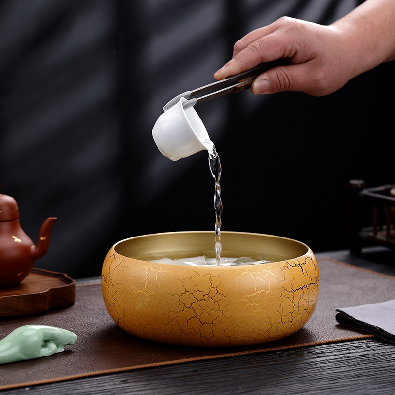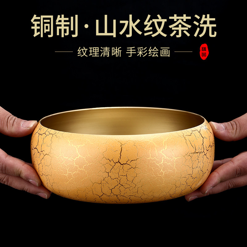 裕鸿纯黄铜大号茶洗功夫茶具配件家用洗茶杯洗茶碗水盂笔洗器皿
