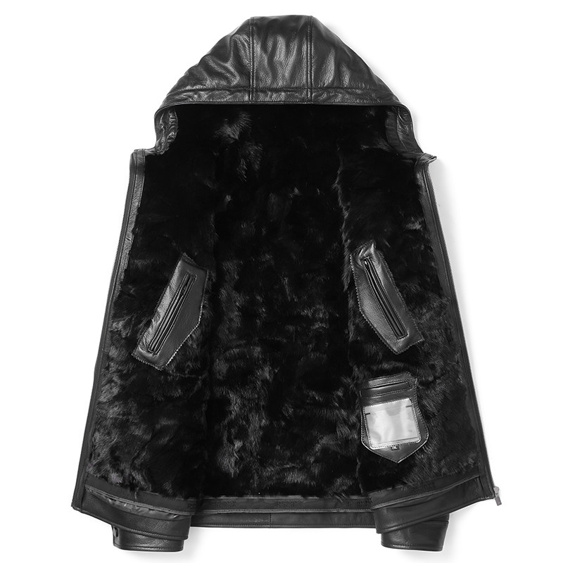 山羊皮貂皮大衣男士外套真皮皮草水貂内胆冬季加厚连帽皮夹克外套
