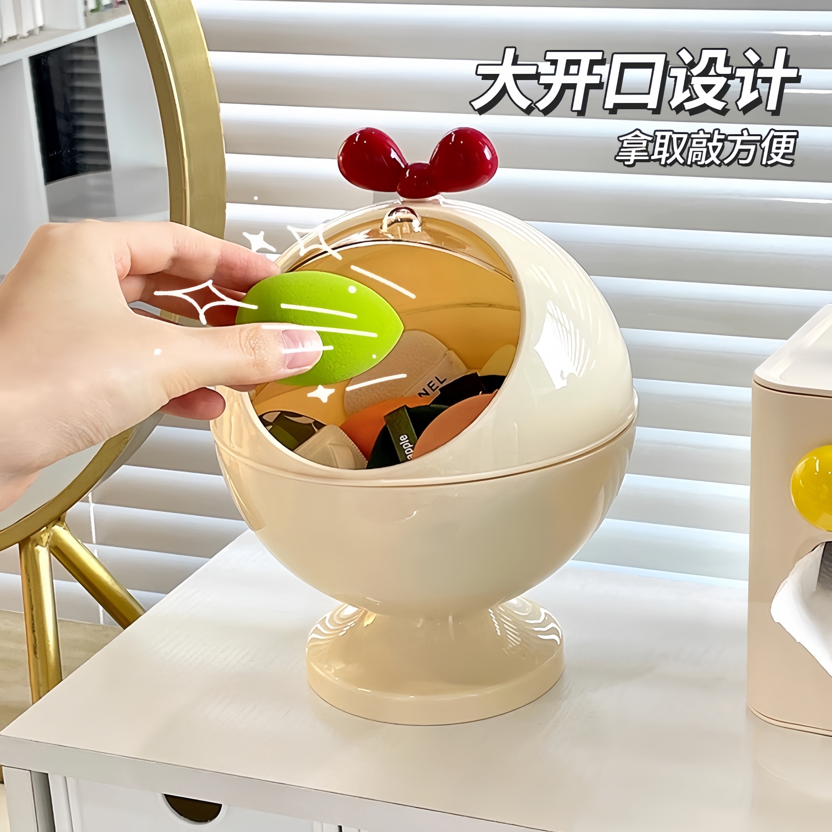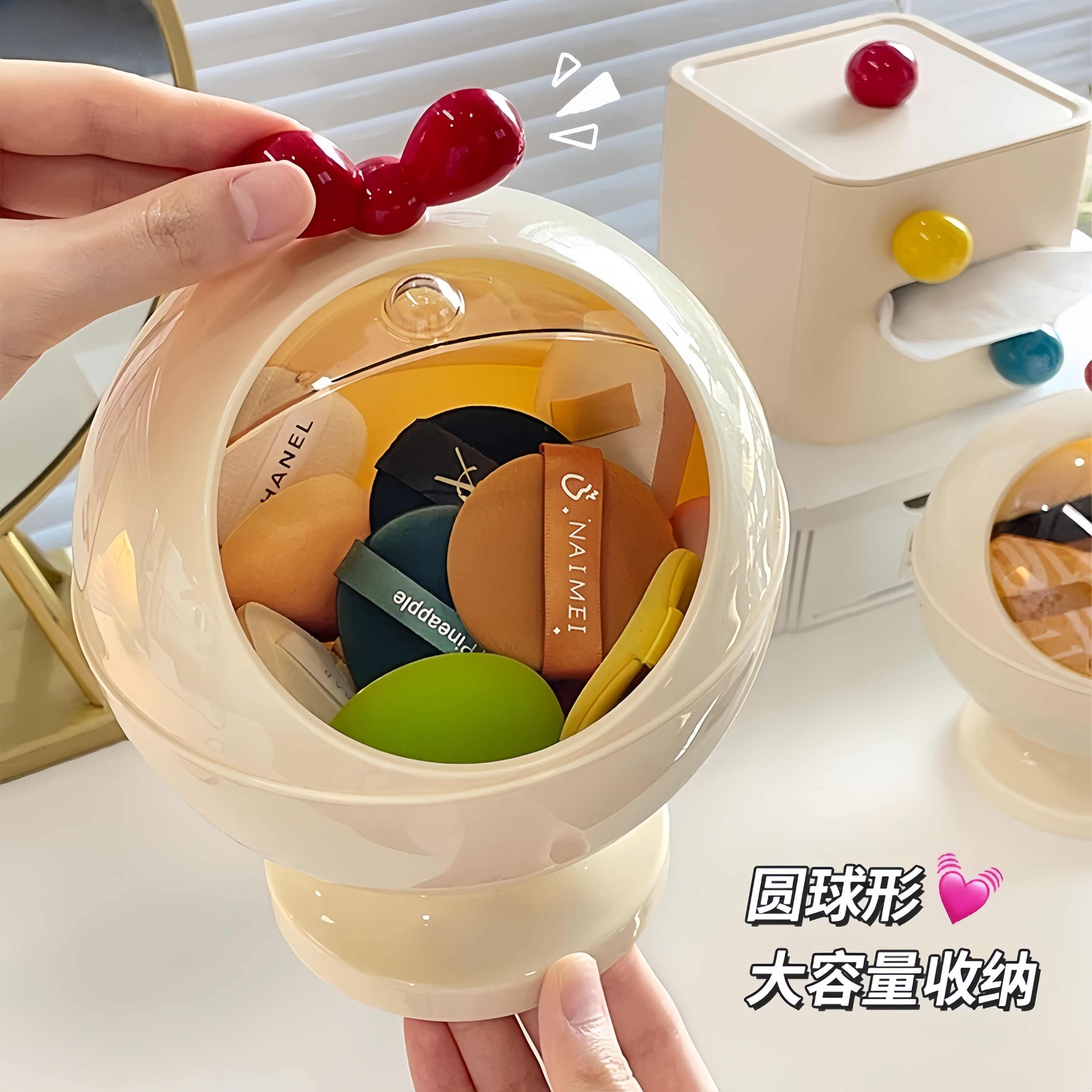 粉扑收纳盒桌面梳妆台防尘大容量翻盖盒子气垫美妆蛋化妆品置物架