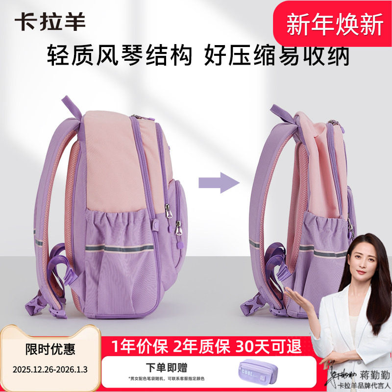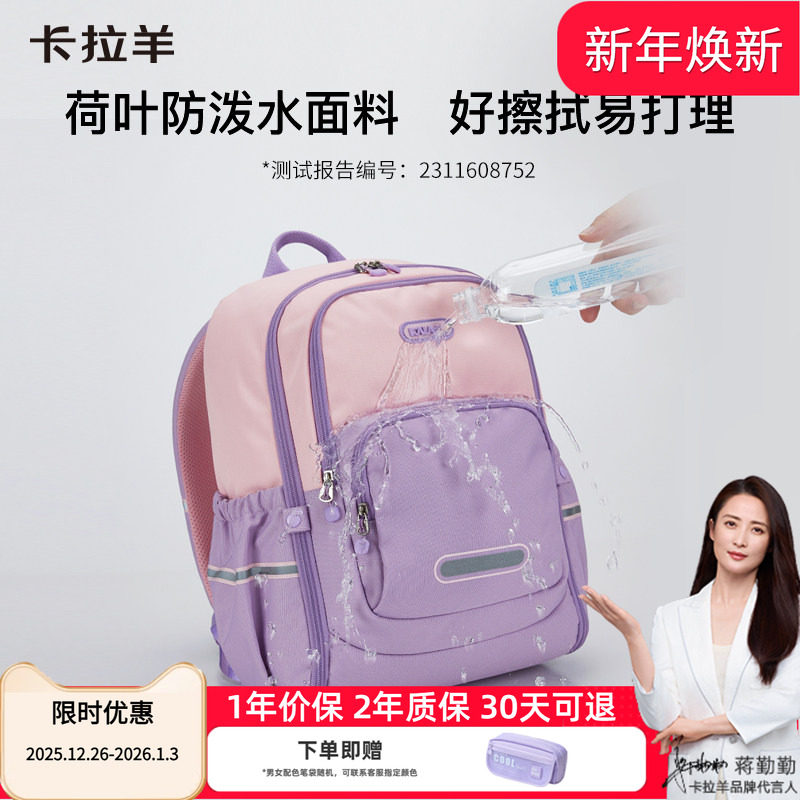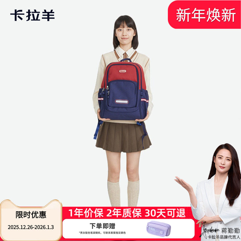 卡拉羊中学生轻便防水双肩书包