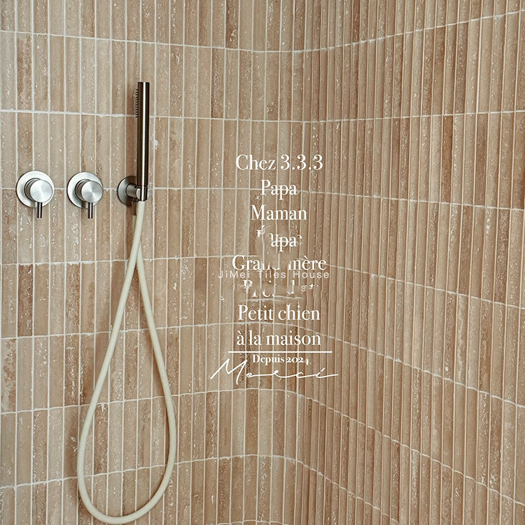 莱姆洞石长条马赛克瓷砖卫生间浴室背景墙面服装店圆柱吧台凹凸