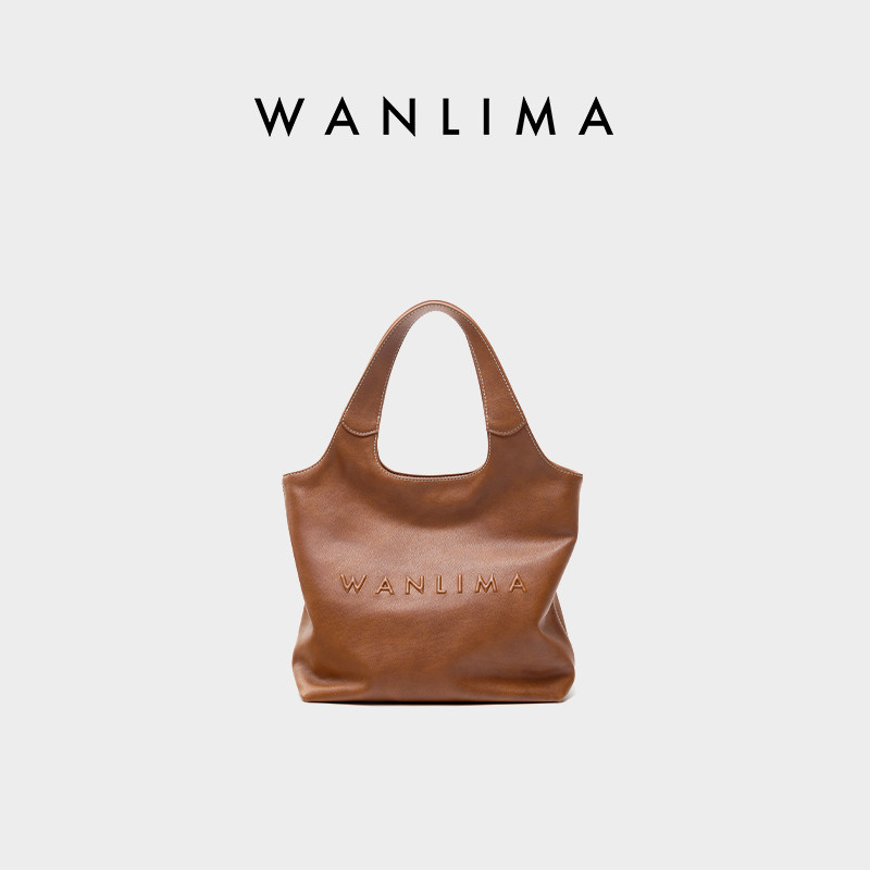 万里马漫迹植鞣质感托特包女2025新款通勤单肩斜挎包手提水桶包