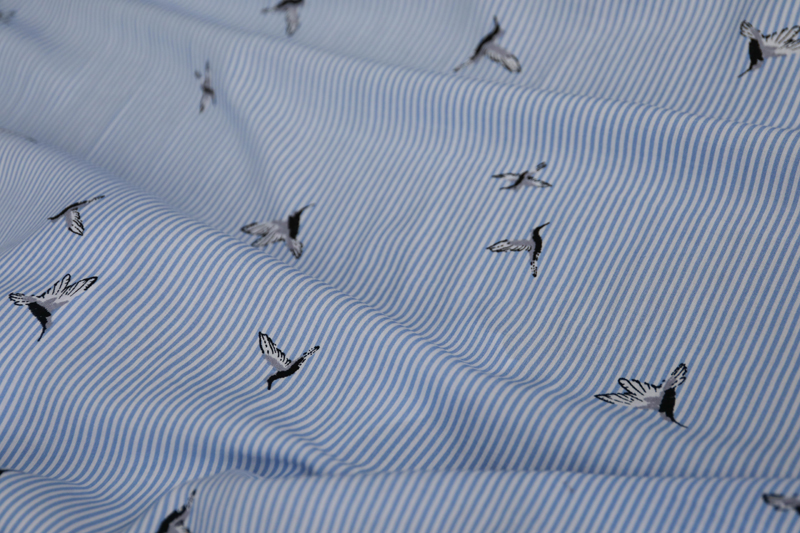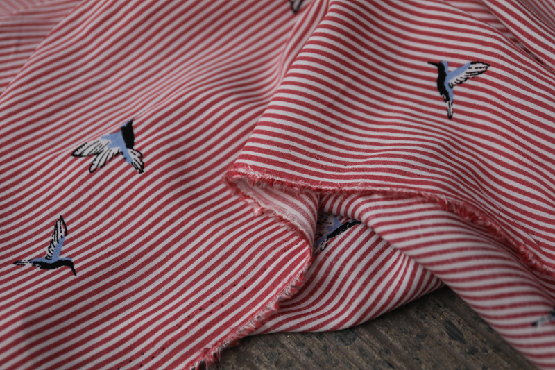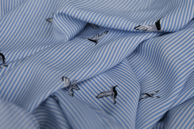 韩国进口兰白条纹印花红白条纹印花100%棉绸布料设计师连衣裙面料