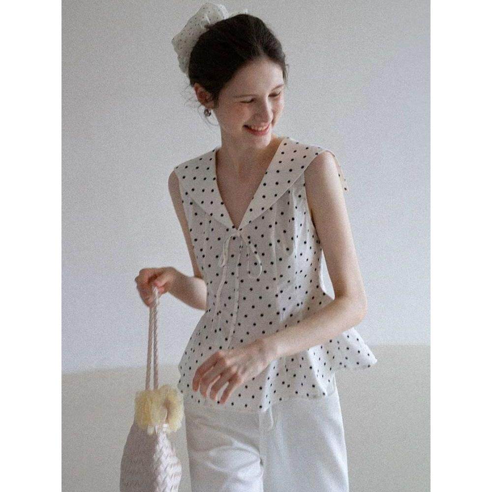 春装女装加小码XXXS小个子150cm显高甜美无袖海军领波点背心2026