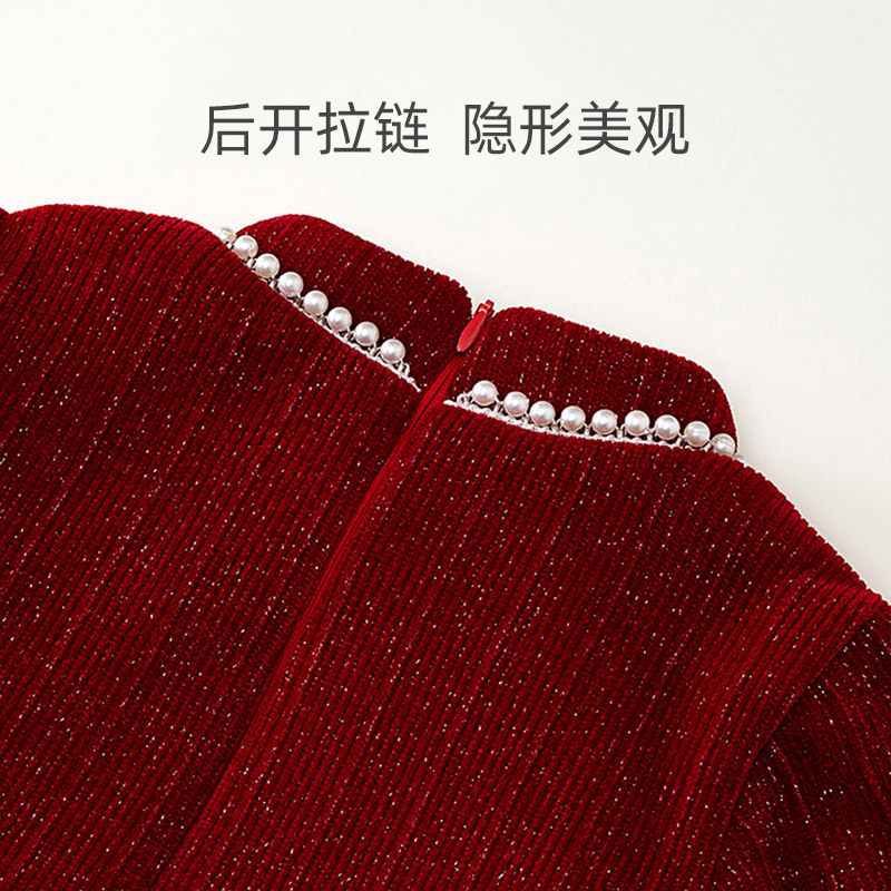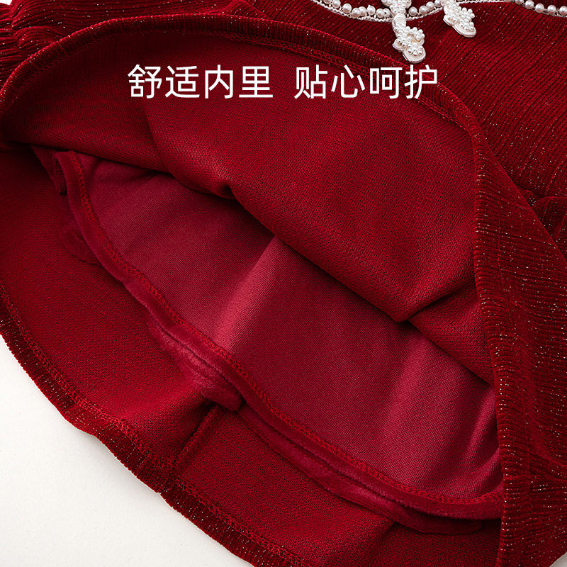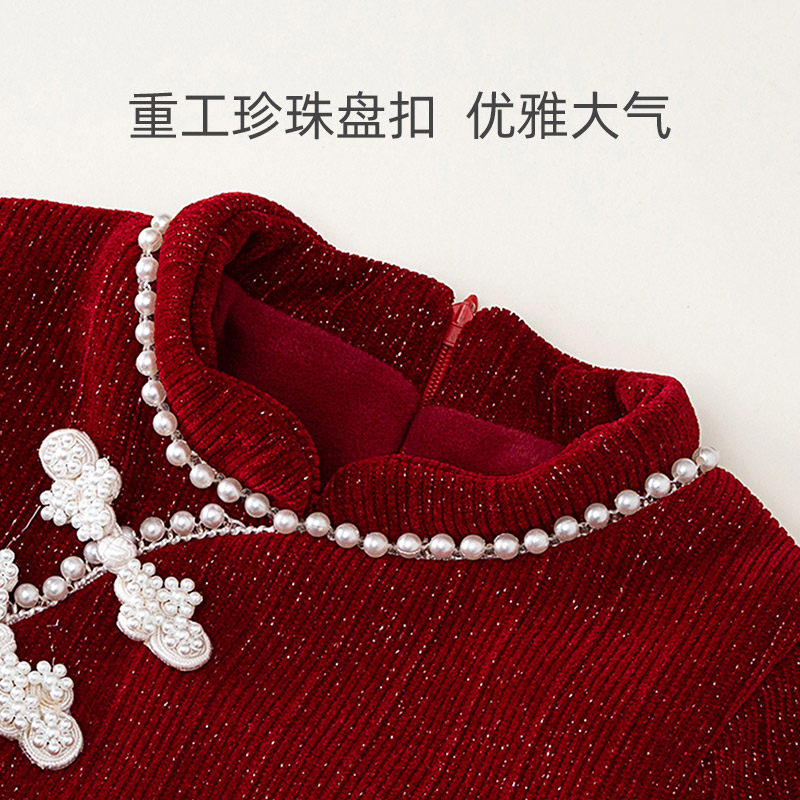 女童裙子秋冬新年儿童加绒连衣裙宝宝洋气公主裙婴儿过年拜年衣服