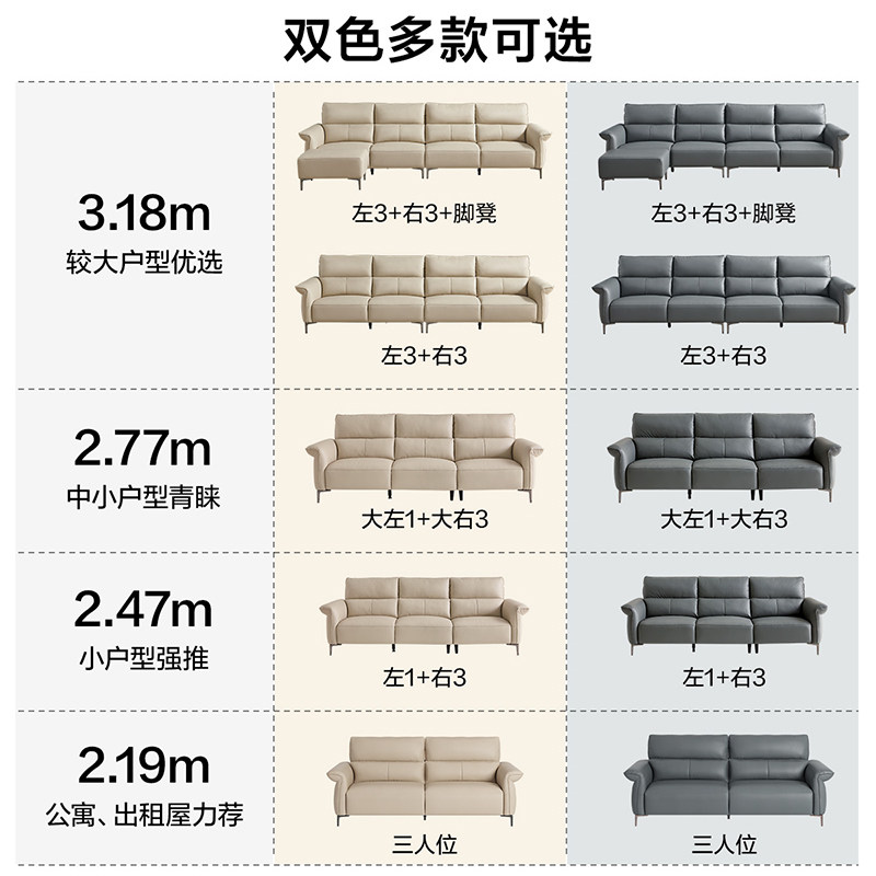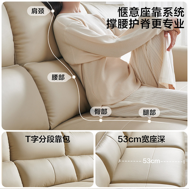 全友家居现代简约直排真皮沙发客厅家用2025年新款小户型皮艺沙发