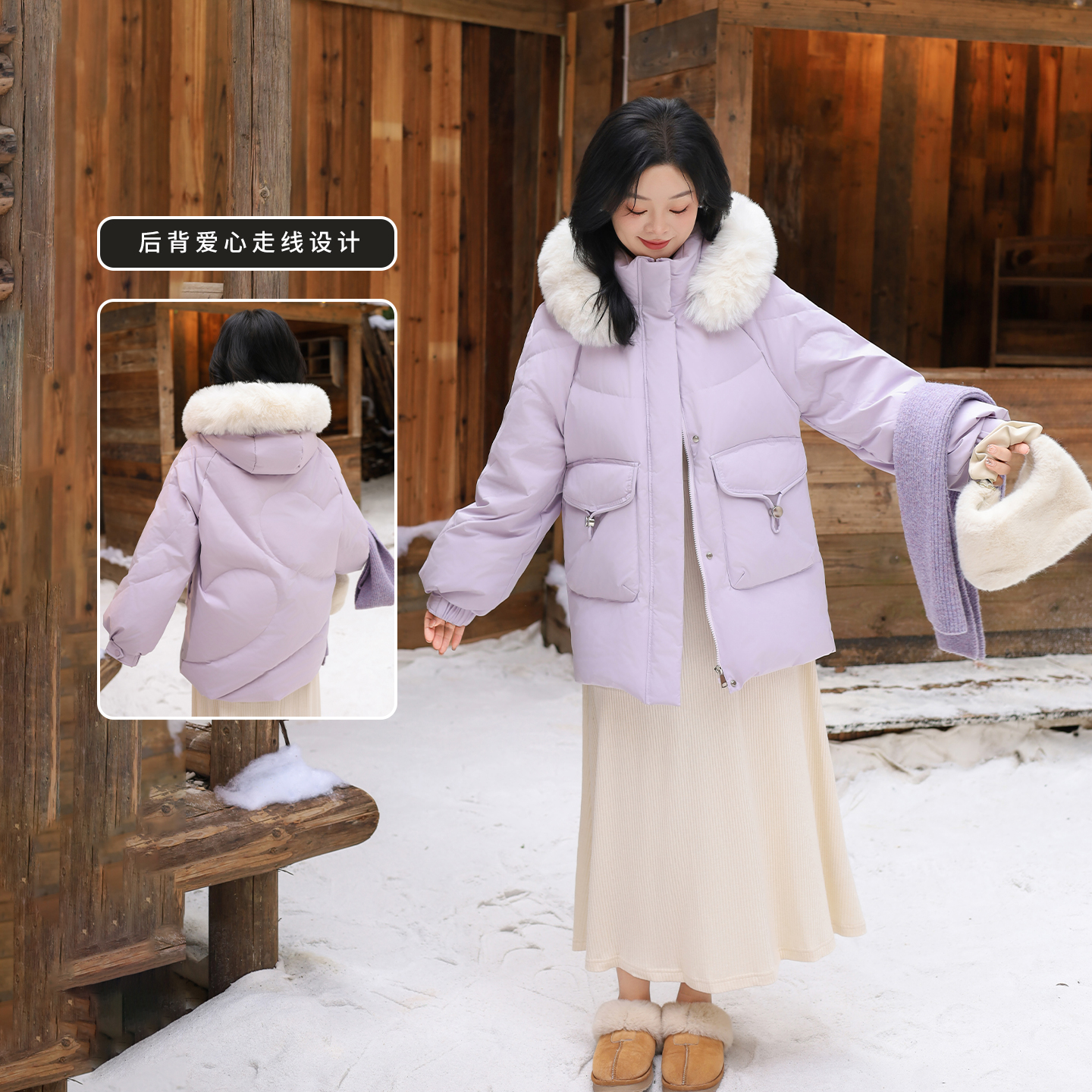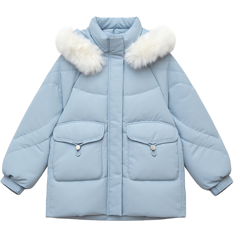 DM100大码百分百女装微胖mm冬季环保毛领三防连帽加厚羽绒服外套