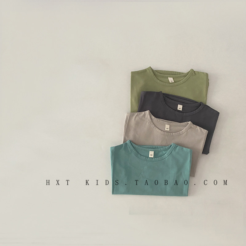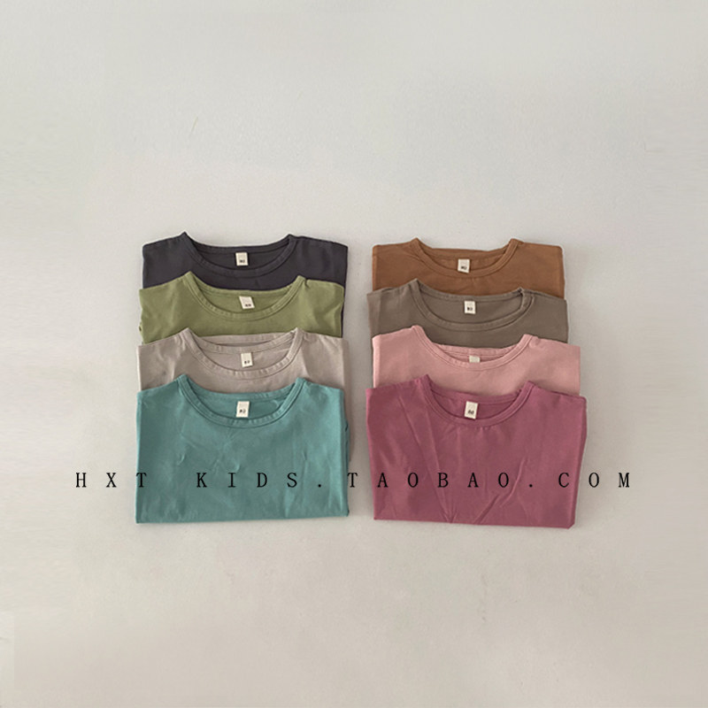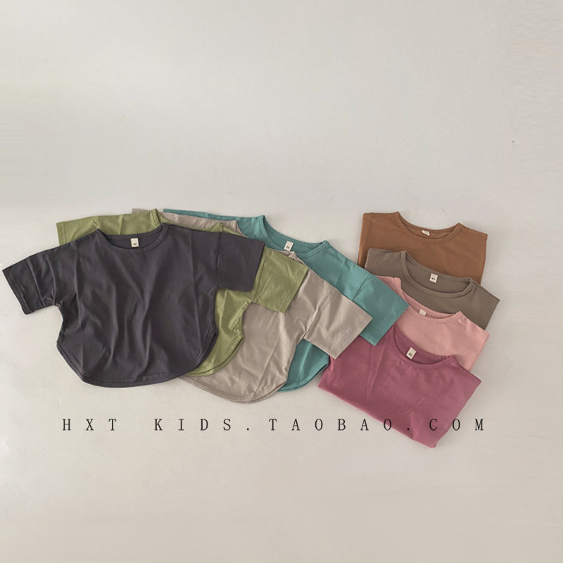 ins基础款~儿童短袖夏季透气纯色洋气穿搭T恤男女童宝宝宽松上衣