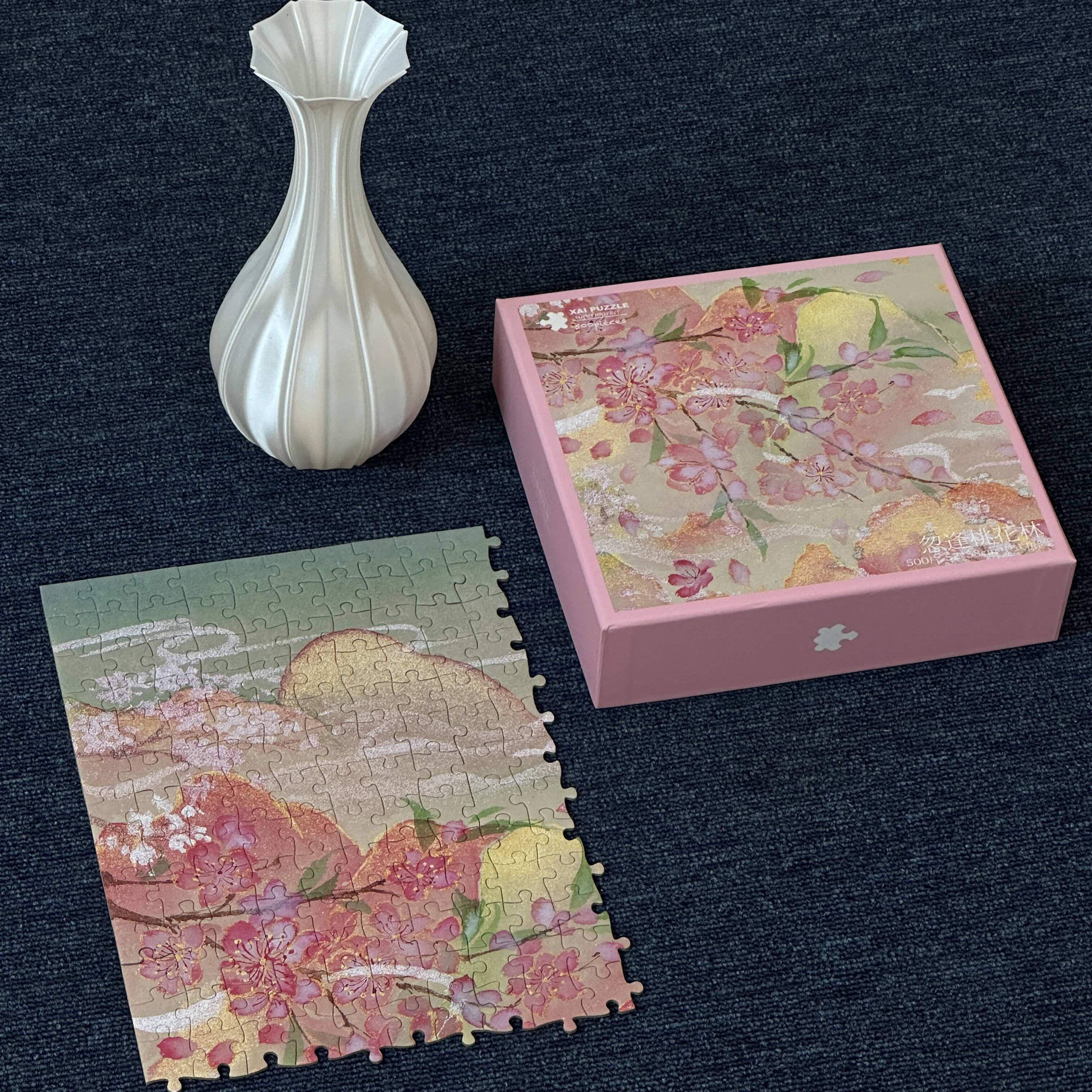 《忽逢桃花林》怦然心动·原创手绘拼图•500片丝绒触感53x38cm
